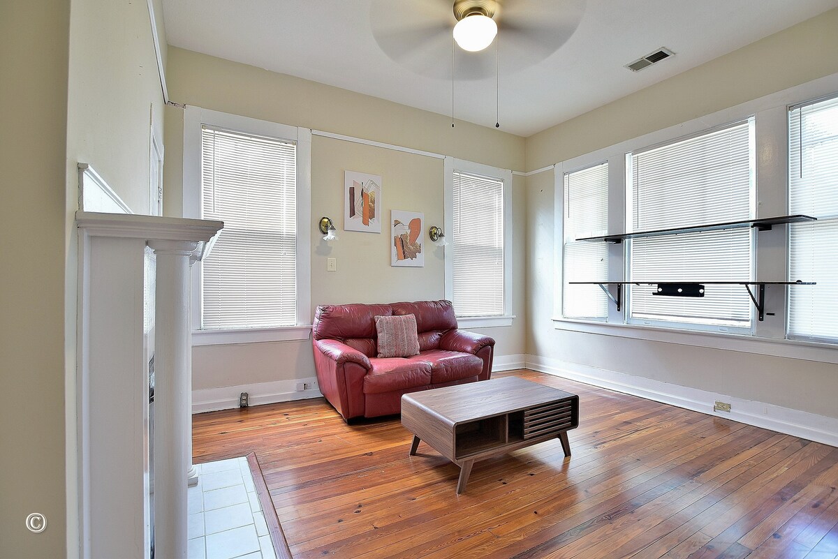 Apartemen Carriage House Downtown yang Menyenangkan. Lantai Kayu Ruang Tamu Baru! Jarak Berjalan Kaki ke Fasilitas dan Atraksi termasuk Whitewater Rafting dan Nightlife dan hanya 8 hingga 10 menit dari Fort Benning. Halaman tertutup yang indah! Terletak tepat di belakang rumah pribadi Bersejarah kami, bangunan ini adalah rumah asli untuk kereta keluarga saat tidak digunakan. Kami memiliki teriakan cepat 300+ wifi, mesin cuci dan pengering, dan sampo dan kondisioner untuk malam pertamamu
