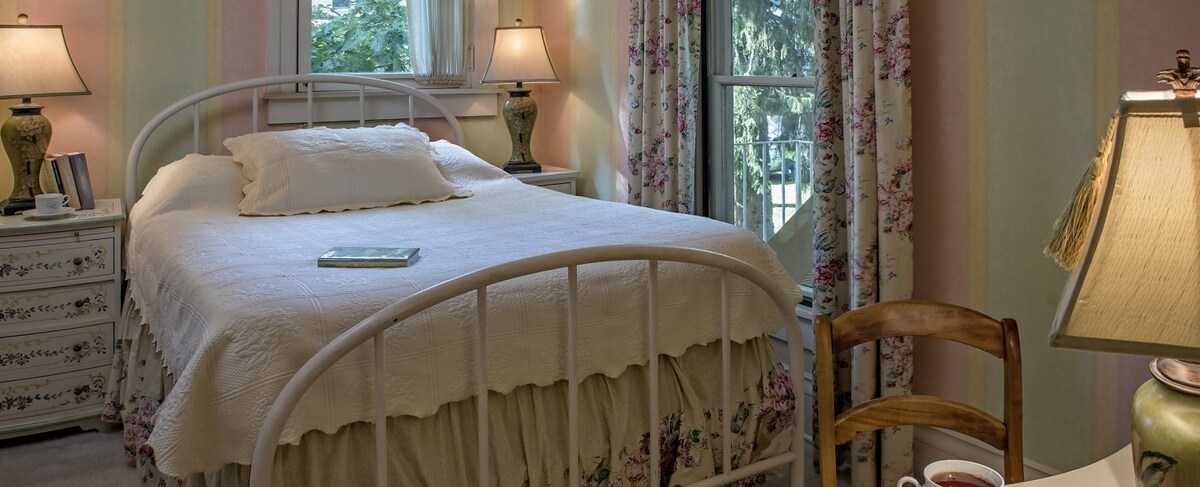 Snuggle in this corner room delight that is complete with a two person JACUZZI® , surrounded by relaxing meadows and soft colors just how Jane would have wanted it Novelist, daughter of a clergyman, was born at the rectory of Steventon near Basingstoke. She received an education superior to that generally given to girls of her time and took early to writing, her first tale begun in 1798. ROOM FEATURES: Double bed JACUZZI® tub with a European hand-held showeray.