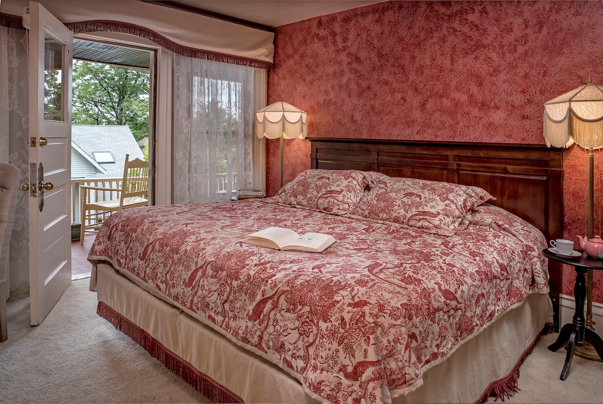 Indulge in a tale of romance in the Brownings Room, where lavender lampshades and soft hues create an ambiance inspired by the love story of Robert and Elizabeth Browning, renowned Victorian-era English poets. Room Features: - Queen bed - Love seat with a twin sofa bed - Kitchenette - 1 ½ bathrooms en-suite - Jetted clawfoot tub with European handheld shower - Monogrammed bathrobes - Gilchrist and Soames bath amenities - Free WiFi access - Hairdryer - Iron and ironing board