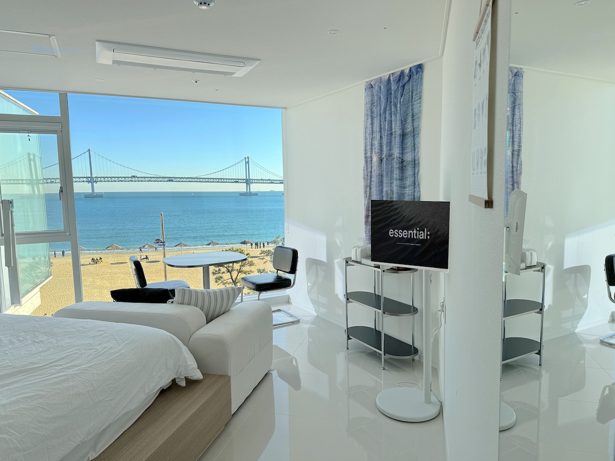 30 detik dari Pantai Gwangalli, 2 kamar tidur, 2 tempat tidur, kamar dengan pemandangan laut di depan Jembatan Gwangan