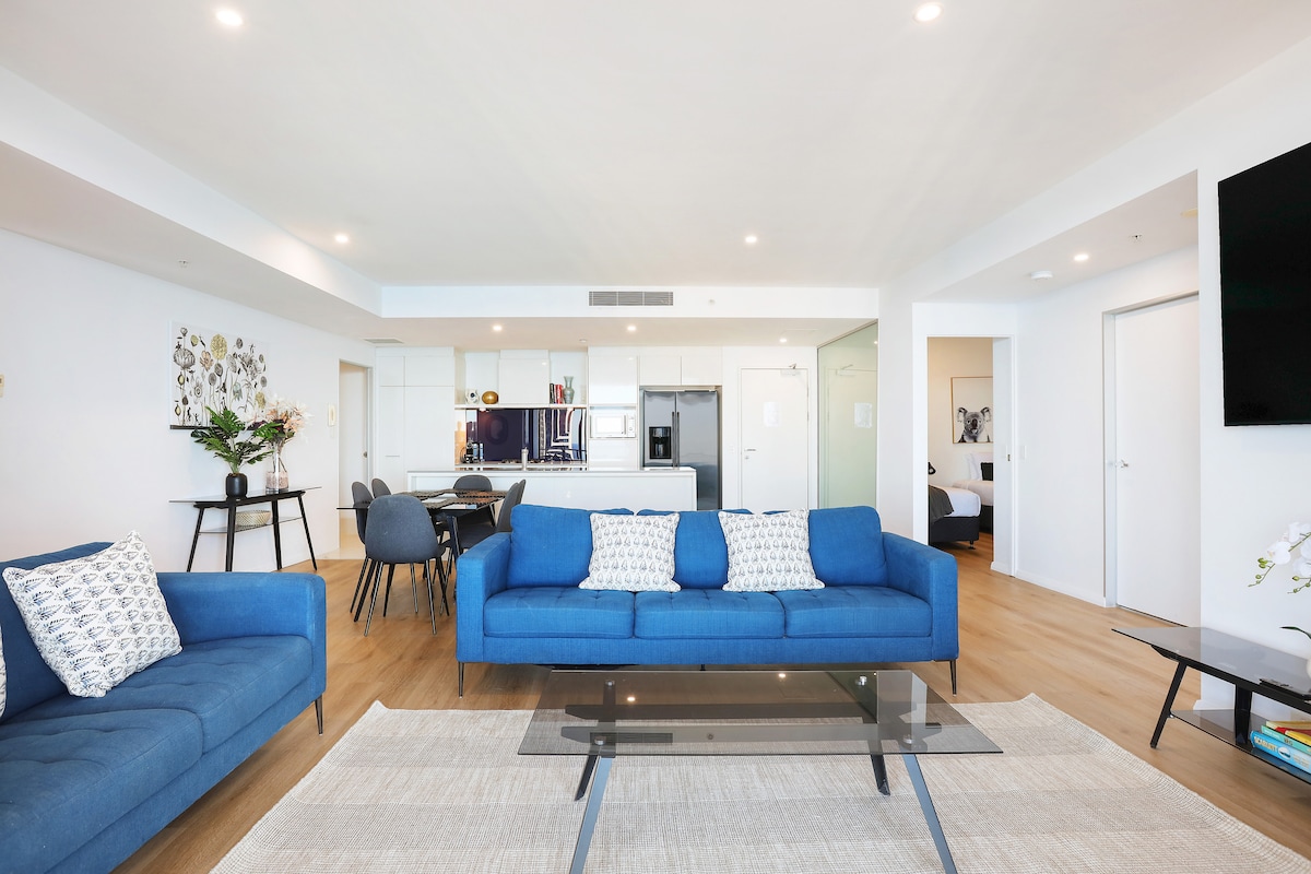 Selamat datang di suaka laut Anda di pusat Surfers Paradise! Terletak di lantai 33, apartemen yang menakjubkan ini menawarkan pemandangan panorama Gold Coast. Hanya 2 menit dari pantai, tempat makan, dan hiburan, tempat ini sangat cocok untuk liburan romantis, keluarga, atau liburan pesisir yang damai. • 250 m ke pantai Surfers Paradise yang indah • Tepat di pusat – kafe, restoran, dan toko di depan pintu Anda • Kolam renang bergaya resor – laguna, lap, dalam ruangan yang dipanaskan + bak mandi air panas • Bersantai & isi ulang energi – termasuk sauna dan gym