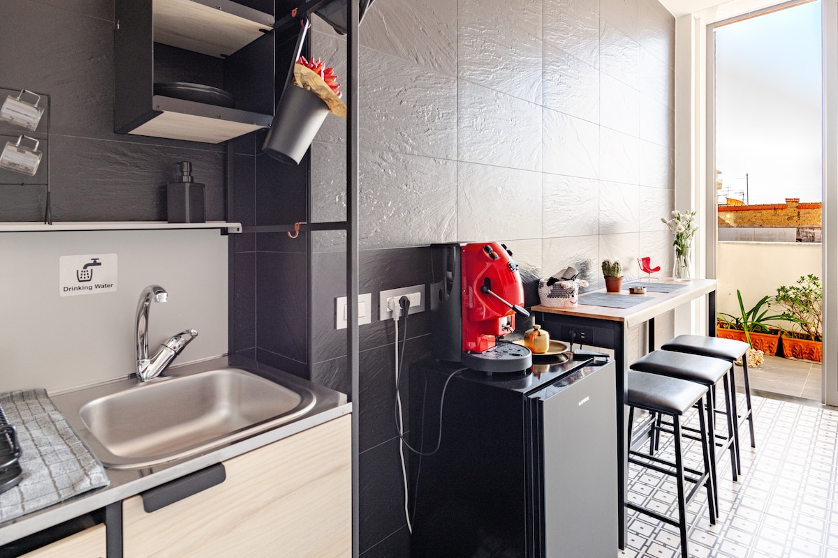 Luxury apartment: a combination of classic elegance and modernity, just renovated with JACUZZI and PRIVATE ROOFTOP of 90mq where you can admire the volcano Vesuvius. Located in a historical building on the 3rd floor without elevator in the heart of the old town, you can reach everything by walking. WiFi, PrimeVideo, Nespresso and luggage storage for FREE Points of interest • 2 min Duomo • 4 min Underground Naples • 6 min Metro L1 & L2 • 5 min Train Station • 10 min Harbour