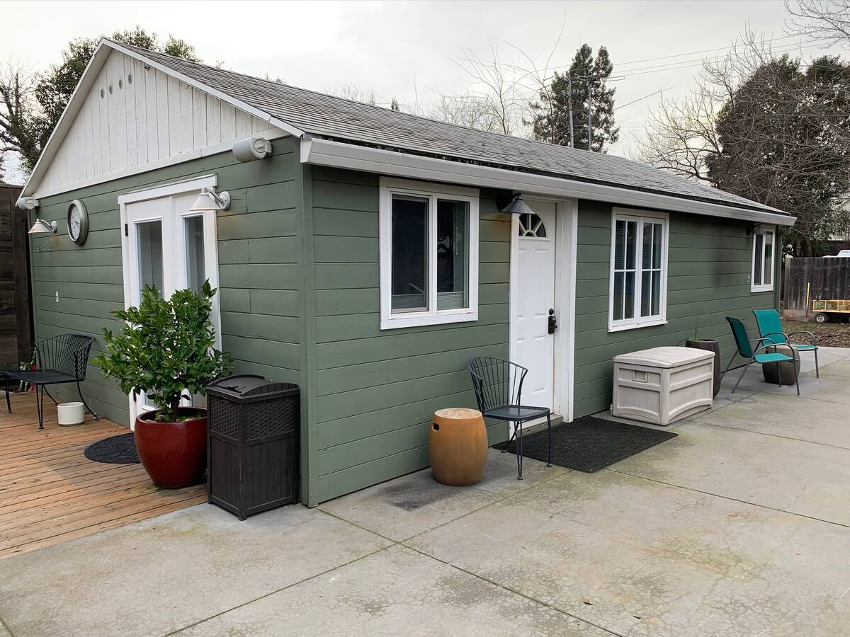 This cottage was completely remodeled in 2020. It sits on the back of our property and backs up to an orchard. The property is over an acre. It is quiet and peaceful. You will find fruit trees, grapes, a garden and chickens. The chickens roam the property during the day. There is a covered patio and fire pit to enjoy the evenings in Chico. If you like to cook outdoors there is a gas BBQ & pellet grill/smoker. It is 1.8 miles from Chico State and Downtown.
