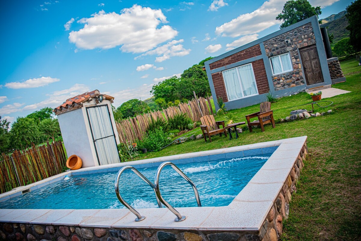 Disfrutá de una cabaña totalmente privada con pileta exclusiva, galería techada, jardín amplio y vista abierta a los cerros. Un espacio tranquilo, cómodo y seguro, ideal para familias, parejas y escapadas de descanso. La propiedad cuenta con 2 dormitorios, cocina equipada, parrilla, patio amplio y todos los servicios necesarios para una estadía relajada.