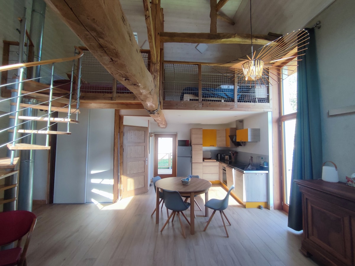 Seluruh apartemen, terpisah dari rumah di sebelah rumah pemiliknya. Sekitar 85 m2 di 2 lantai + loteng diubah menjadi area relaksasi atau tempat tidur tambahan (2×1p). Lantai bawah dilengkapi dapur, kamar mandi dengan shower Italia. Toilet terpisah. Di lantai atas, ruangan besar dengan 140 tempat tidur, sofa bed untuk 2 orang. Pintu masuk sangat dekat dengan teras pemilik, yang bisa digunakan bersama. Jika Anda tertarik dengan hewan: domba, kuda, dan ayam akan menjadi teman Anda dan Pépin si anjing!