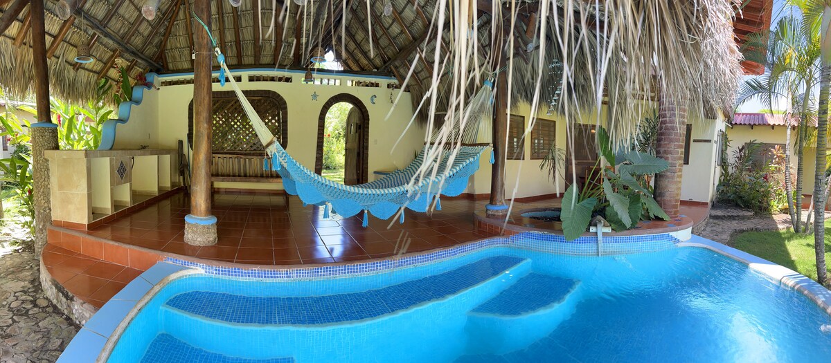 Casita modern bergaya baru dengan kolam renang yang terletak di komunitas berpagar Brisas de Alma langsung di pantai di Boom yang terkenal di dunia. Memiliki AC, kipas angin gantung, bak mandi lengkap dengan pancuran, kulkas kecil, kompor listrik, microwave, wifi berkecepatan tinggi (jarang di Nica), dan cadangan baterai tenaga surya. Terletak kurang dari 100 yard dari pasir langsung di Boom. Tuan rumah lokal bilingual kami tersedia untuk segala hal yang Anda butuhkan termasuk transportasi, penyewaan, sewa perahu, info selancar, foto, tur gunung berapi, dll.