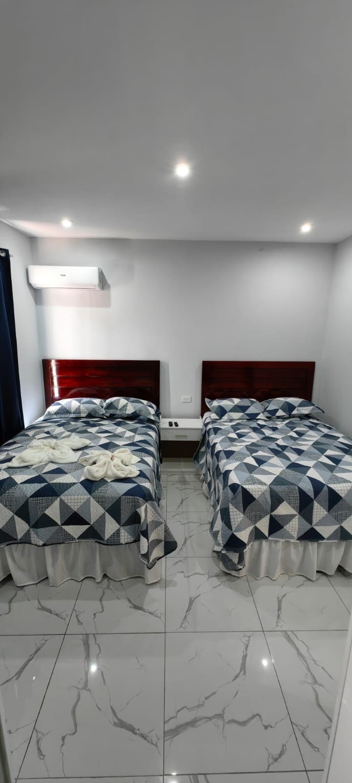Son tres apartamentos en la misma ubicación y edificio, con capacidad máxima de hasta 26 personas, en camas dobles y sofas camas individuales. Ubicada en área residencial segura, a 5 minutos en vehículo, a la Basílica del Cristo de Esquipulas.