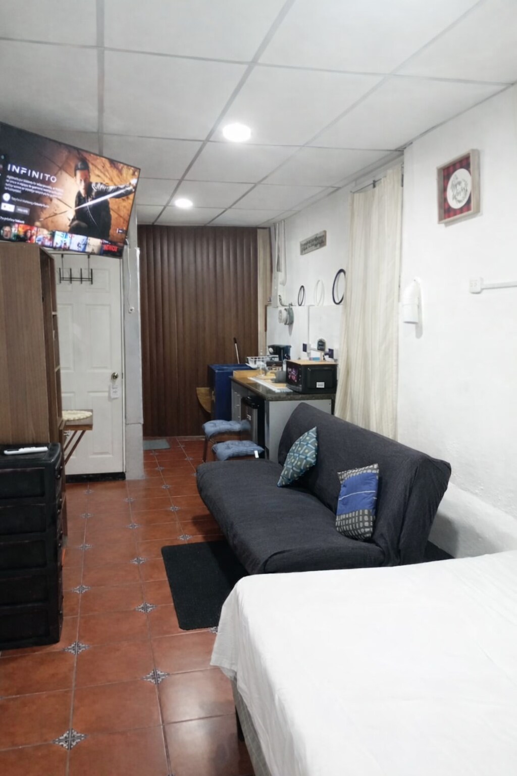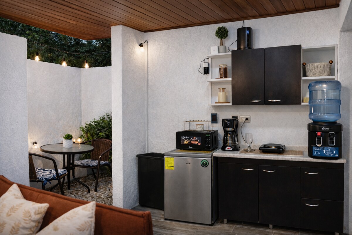 Enjoy a comfortable and elegant stay at the Loft Noir Paris, a modern and functional space, ideal for business trips or a quiet getaway. Private atmosphere. 📍 Easy access to the main road and travel to Esquipulas (30 min). Capacity and layout • Studio-style space • 1 double bed • Up to 2 guests • Internal green area Included amenities • Air conditioning • Smart TV • WiFi • Private bathroom • Equipped kitchenette • Complimentary: water, coffee, sugar, oil, and honey