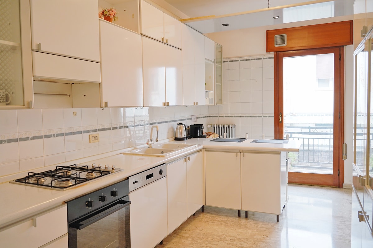 Confortevole appartamento ad uso esclusivo di 55 mq con parcheggio gratuito e fibra wi-fi ad altissima velocità, cucina completamente attrezzata con frigo, freezer, microonde, tostiera e lavastoviglie, camera matrimoniale con cabina armadio, tv a schermo piatto 50 pollici, asciugamani e biancheria da letto sempre freschi all'arrivo, macchina del caffè espresso Lavazza e bollittore per il the. Soggiorno con divano letto da una piazza e mezza e 2 letti singoli. CIN IT027042C23AJNM882