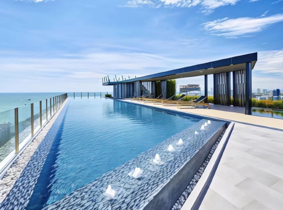 Pantai Pattaya · Apartemen kolam renang pemandangan laut kelas atas · Akses langsung ke pantai Kamar pemandangan laut Pusat kebugaran di samping jalan pejalan kaki