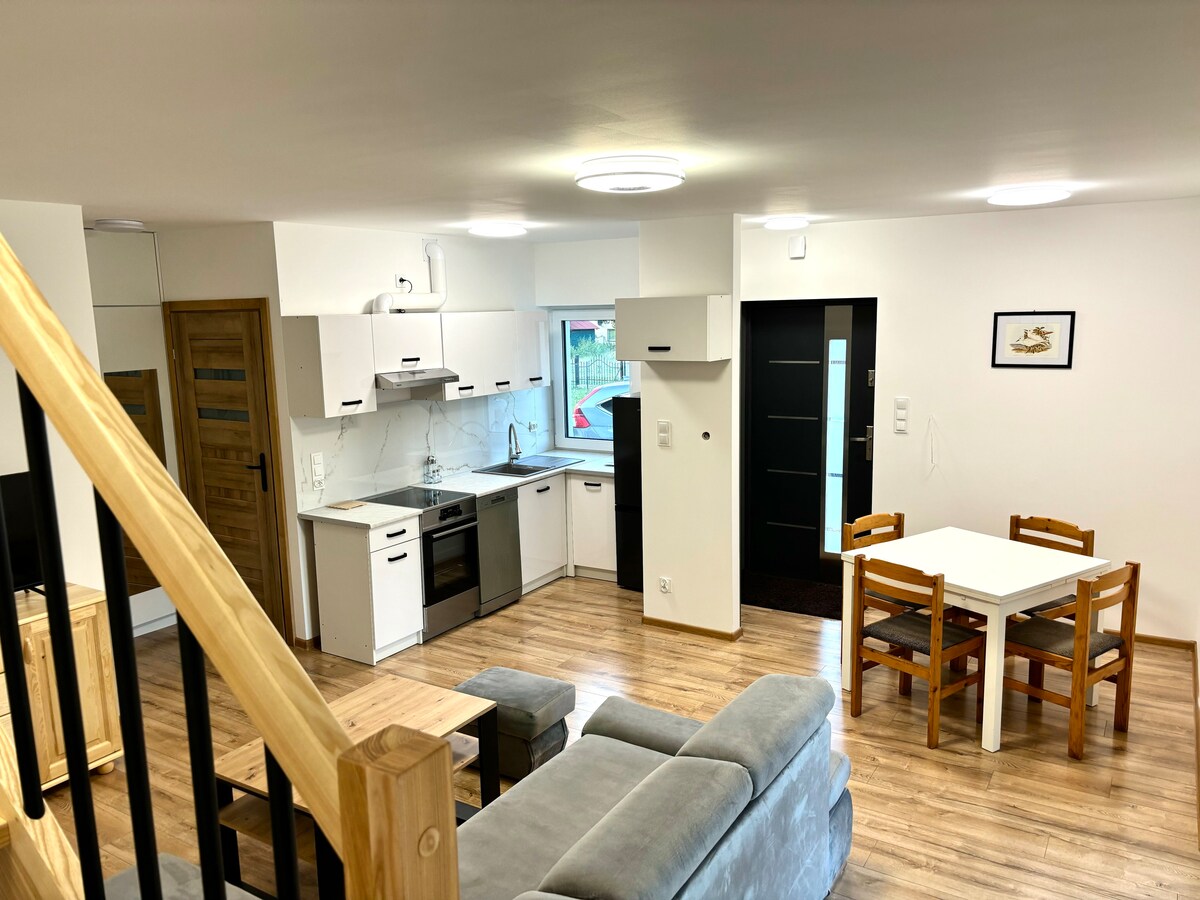Kami memiliki apartemen 3 kamar yang indah untuk disewakan di blok di Chojnice dekat taman nasional Bory Tucholskie. Apartemen dikelilingi oleh hutan dan danau serta banyak jalur sepeda. Kami menyediakan tempat parkir parkir, apartemen memiliki balkon. Toko kelontong (biedronka, żabka), taman bermain, restoran (pizza / sushi) berada di dekatnya. Apartemen ini berada di lantai dasar di daerah yang sangat tenang dan sepi. Sangat cocok untuk perjalanan keluarga atau kelompok.