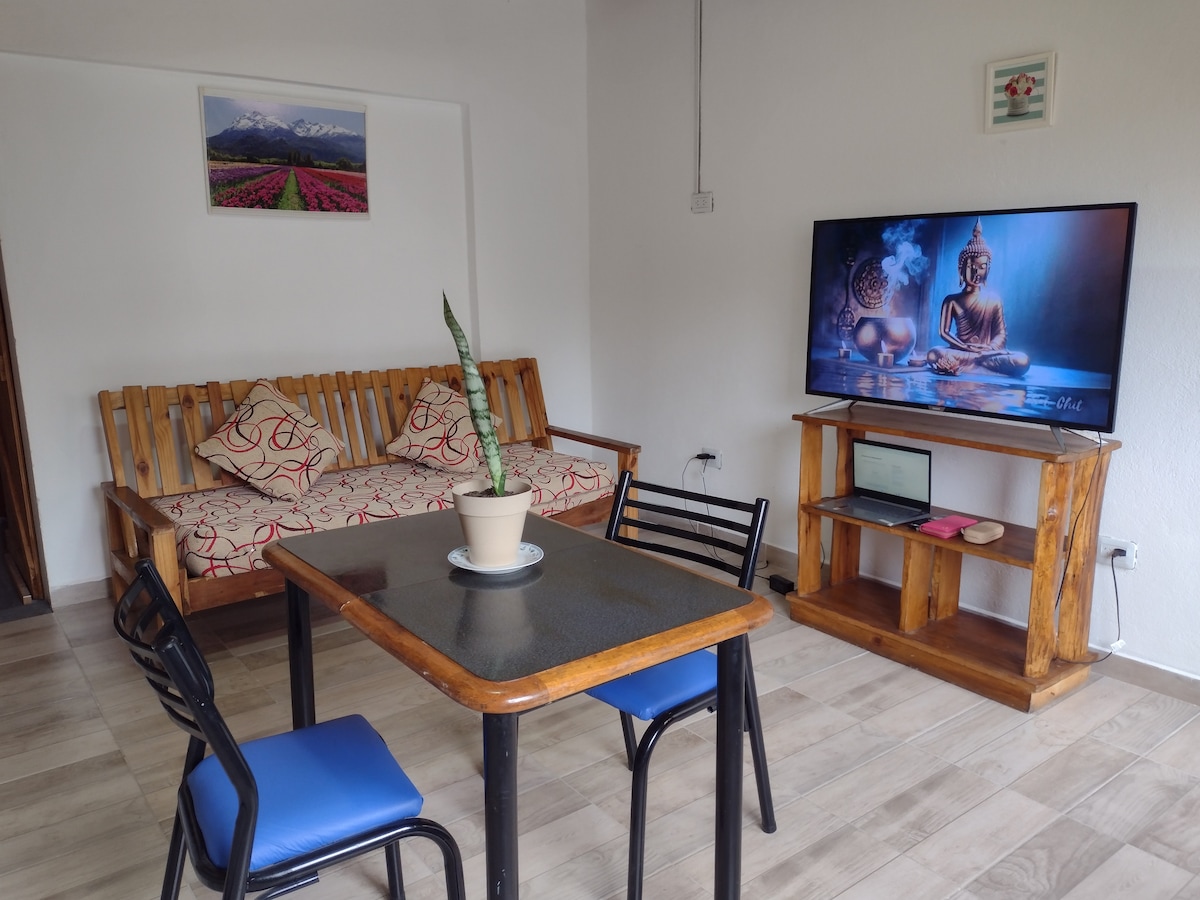 Tempat perlindungan yang sentral dan cerah, ideal untuk masa inap yang nyaman dan mudah. Dirombak dengan dedikasi, rumah kecil ini menawarkan dapur lengkap, Wi-Fi 300 MB, Smart TV, seprai berkualitas, dan pancuran mandi yang sangat baik. Terletak beberapa langkah dari kafe, restoran, dan tempat wisata seperti La Trochita dan taman. Parkir aman di depan pintu dan check-in mudah. Cocok untuk pasangan atau wisatawan solo.