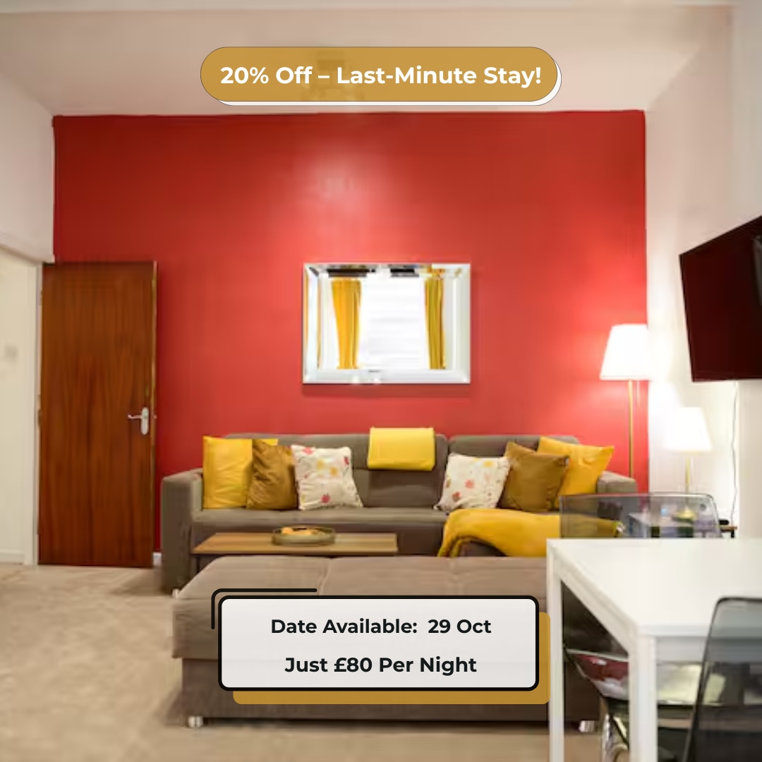 Apartemen 1 Tempat Tidur Mewah baru dengan tempat tidur sofa yang ditata dengan furnitur kayu ek premium. Cerah, Luas & Nyaman Terletak dengan nyaman di seberang Emirates Old Trafford dan hanya 5 menit berjalan kaki ke Stadion Manchester United yang legendaris, tempat ini menawarkan lokasi utama. Selain itu, berjalan kaki singkat 5 menit akan membawa Anda ke halte trem, menyediakan akses langsung ke Pusat Kota yang ramai. Rasakan perpaduan sempurna antara sejarah, olahraga, dan hiburan selama Anda menginap