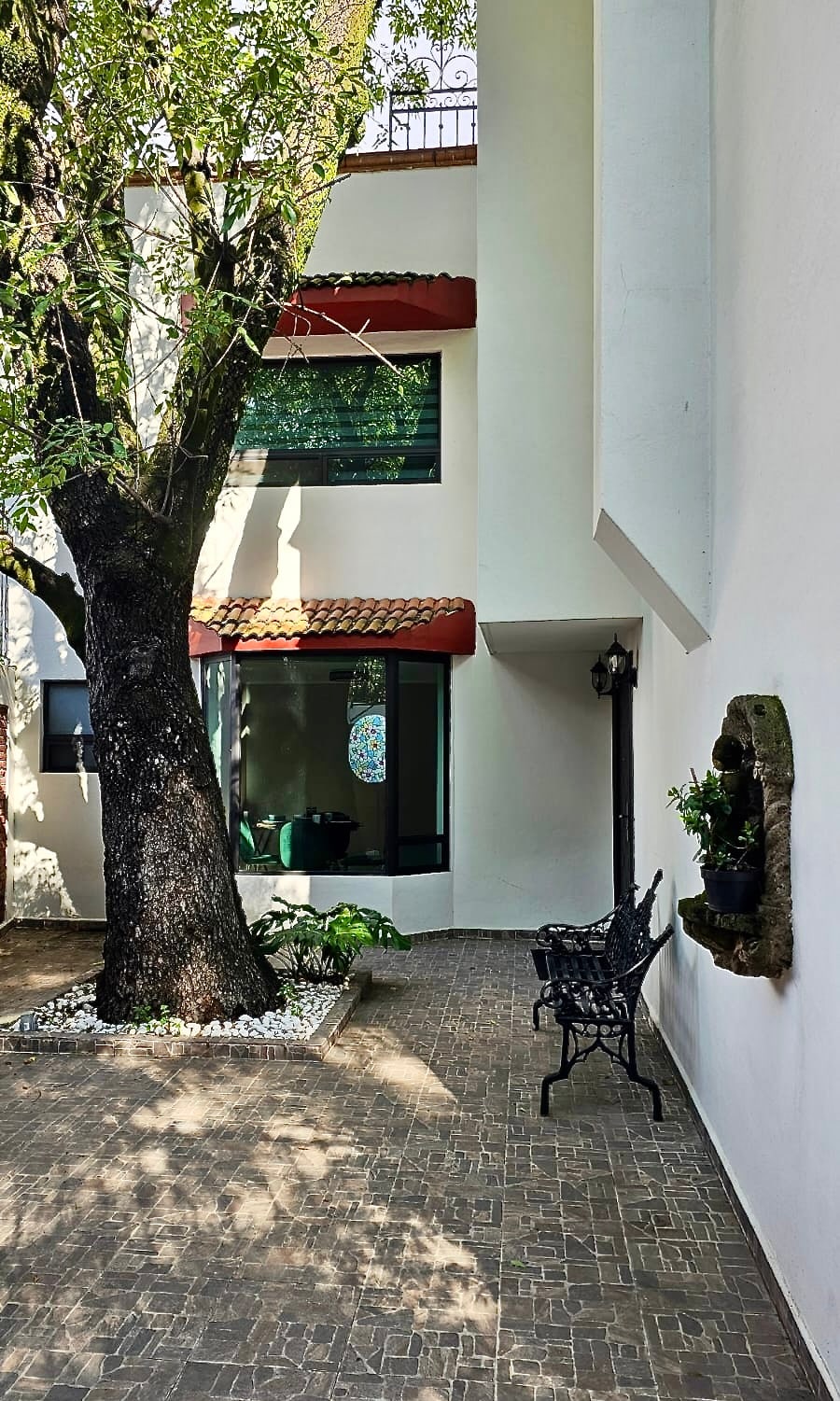 Come and stay in a spacious and beautiful house in traditional Coyoacán and experience living amidst history, art, and music in one of Mexico City's most iconic neighborhoods. TV with Netflix, Prime, YouTube Enjoy three spacious bedrooms with private dressing rooms and full bathrooms, as well as a third bedroom with two beds. Terrace overlooking the National Museum of Interventions park. Fully equipped kitchen and breakfast area overlooking the patio. Private covered parking for two cars.