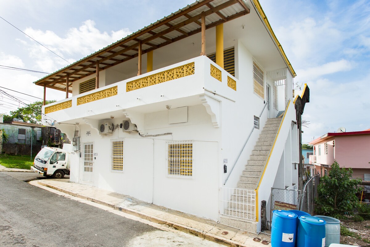 Menginaplah di antara warga lokal dan buat kenangan di tempat unik dan ramah keluarga ini. Kami telah memasang PANEL SURYA, tangki air cadangan, dan pemanas air tenaga surya untuk ketenangan pikiran. Nikmati pemandangan Yunque Rainforest dan angin sepoi - sepoi dari balkon. Saat musim liburan, nikmatilah memetik mangga dari pohon kami atau bersantai setelah banyak petualangan Anda di hammock. Handuk dan perlengkapan pantai juga tersedia.