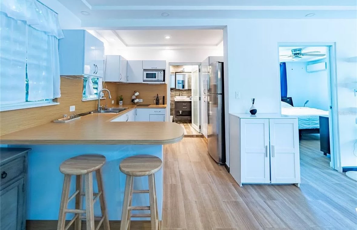 Kami menawarkan kepada tamu kami ruang dengan dapur dan peralatan dasar. Dapurnya memiliki microwave, pemanggang roti, oven, pembuat kopi, dan kulkas. Ruang tamu memiliki perabot, AC, dan ruang makan. Kami menawarkan kamar yang terdiri dari tempat tidur berukuran queen, AC, TV kecil di kamar, WiFi dan Roku (dengan akunnya sendiri). Anda juga bisa mengakses dua kamar mandi, satu di dalam rumah dan satu lagi terletak di area kolam renang. Ada kolam renang dengan kedalaman 3@6. Ada air panas di tempat tinggal.
