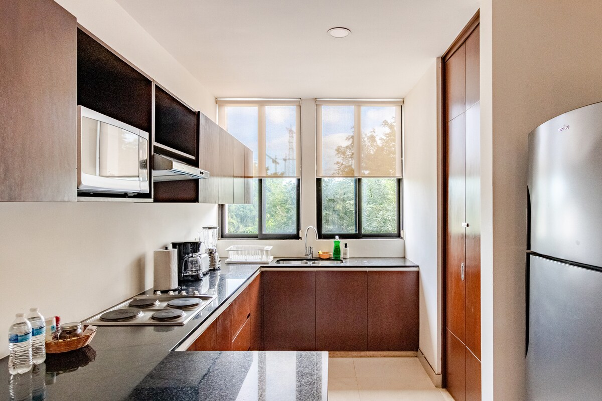 Temukan liburan sempurna Anda di apartemen modern dan berdekorasi apik kami yang berlokasi di area timur laut Merida, Yucatan. Tempat peristirahatan yang elegan ini memiliki teras pribadi yang indah dan kolam renang pribadi, memberikan relaksasi dan kemewahan terbaik. Terletak strategis untuk yang terbaik di Merida, hanya beberapa langkah jauhnya adalah Rumah Sakit Faro del Mayab Muguerza, La Isla, Plaza Altabrisa, dan pilihan bersantap dan hiburan tanpa batas.