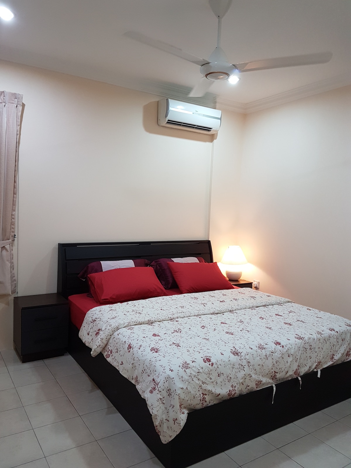 Easily bookable. Modern 3BR Apt with AC & WIFI. It takes 5 minutes drive to Hua Ho Tanjung Bunut, Coffee Bean & Tea Leaf and other shops nearby. Jerudong Park is only 10 minutes drive. McD and other food stalls are available here. 5 minutes walk downhill and to the right to the bus stop. $1 fare to the capital and it takes 20 minutes to the capital depend on the traffic and stops.