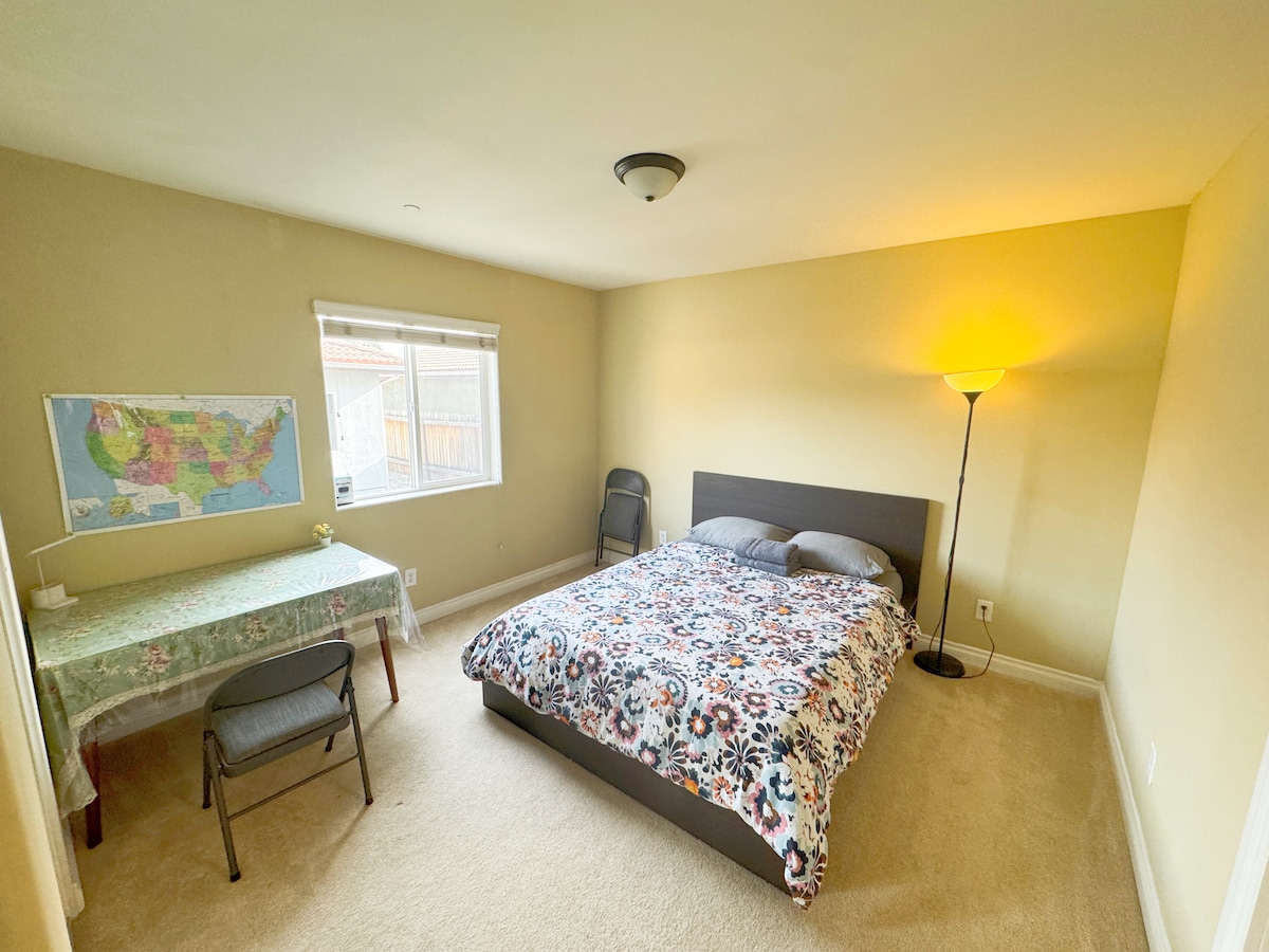 Ini adalah rumah tamu yang telah direnovasi penuh menawan yang dibangun di bagian belakang rumah kami. Kami berada di lingkungan pinggiran kota yang damai. Kamar ini memiliki tempat tidur single, kamar mandi pribadi, pintu masuk sendiri, area parkir khusus, oven microwave, kulkas kecil, pembuat kopi, piring panas 2 - burner, setrika/meja setrika; pemanas dan AC. Di sana juga terdapat patio yang bisa Anda duduki untuk menikmati cuaca California yang segar. Harap perhatikan bahwa kami meminta semua tamu untuk mengirimkan identitas resmi sebelum check - in.