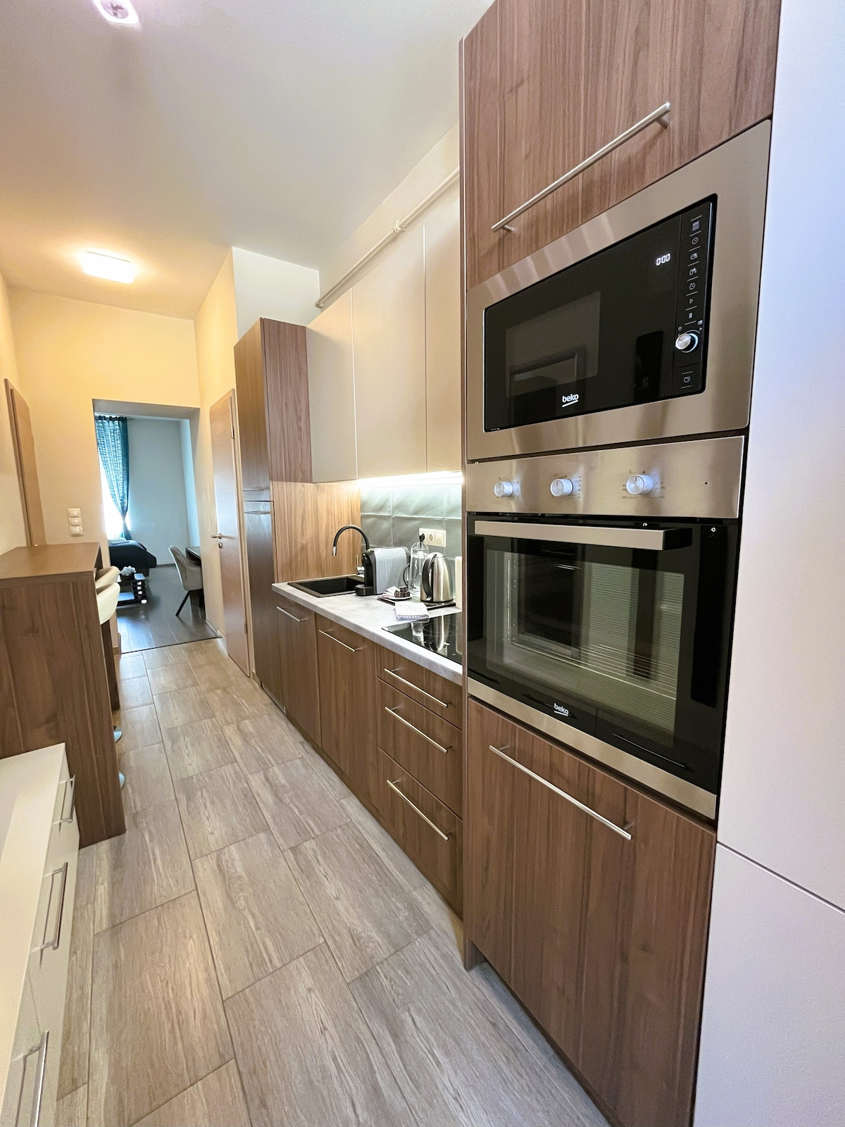Clean beauty invites you to rest your eyes, earth colours relax you from the first moment you enter the apartment. Its interior was inspired by 4 and 5 star hotels of the best chains around the globe, quality was matched, and features even improved to make you feel finding a new home. If the dates you plan to travel are booked, please check our other apartments: we have more of these in the same style, with slightly different amenities :)