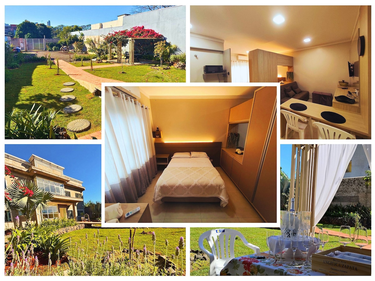 Estúdio privativo, moderno e super silencioso, perfeito para turistas e compradores! Localização estratégica a 7 min do Paraguai (Compras) e perto do corredor turístico (Cataratas, Itaipu, Argentina). A 1 quadra de supermercado e restaurantes. O espaço é completo com cozinha equipada, ar-condicionado e Wi-Fi de alta velocidade. Desfrute do jardim com pergolado e de estacionamento privativo. Seu refúgio de conforto e descanso em Foz!