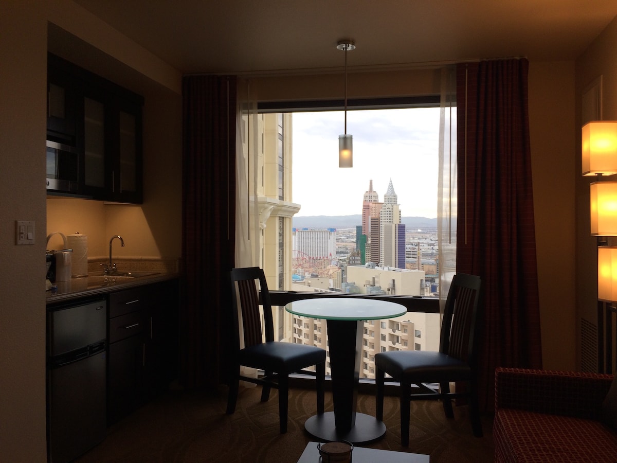 Strip View Suite studio modern yang terletak di lantai 32 dengan pemandangan Las Vegas Strip yang luas. Nikmati oasis ini yang terhubung dengan mudah ke Palms Resort Casino dengan skywalk. * Tamu harus berusia 21 tahun ke atas untuk check in * Kebersihan harian dan handuk/seprai ekstra tidak disediakan. Harap hubungi kami jika Anda membutuhkan layanan kebersihan harian dan handuk/seprai ekstra agar kami bisa mengaturnya dengan biaya tambahan. * Deposit $ 100/hari hingga $ 500 akan ditahan dan dikembalikan setelah check out.