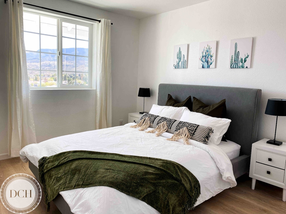 This newly renovated (2025) modern desert studio offers the perfect blend of privacy and comfort. While attached to the main house via double exterior soundproof doors, it has its own separate entrance, ensuring complete privacy and a peaceful retreat. Inside, you’ll find a luxurious CA king-size bed, creating the ideal space for rest and relaxation. Large windows frame breathtaking views of the surrounding desert, filling the studio with natural light and offering a serene, calming atmosphere.