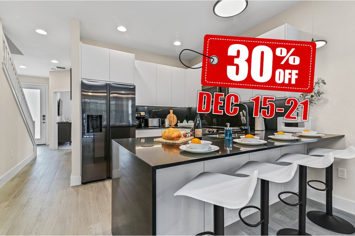 Experience modern luxury just 25 minutes from Disney in this brand-new designer home! Enjoy 3 king bedrooms, a queen-over-queen stunning Harry Potter themed bunk room, a fully stocked chef’s kitchen, and a private heated pool with sleek LED lighting. Perfect for families and groups seeking style, comfort, and unforgettable memories in a beautifully curated space!