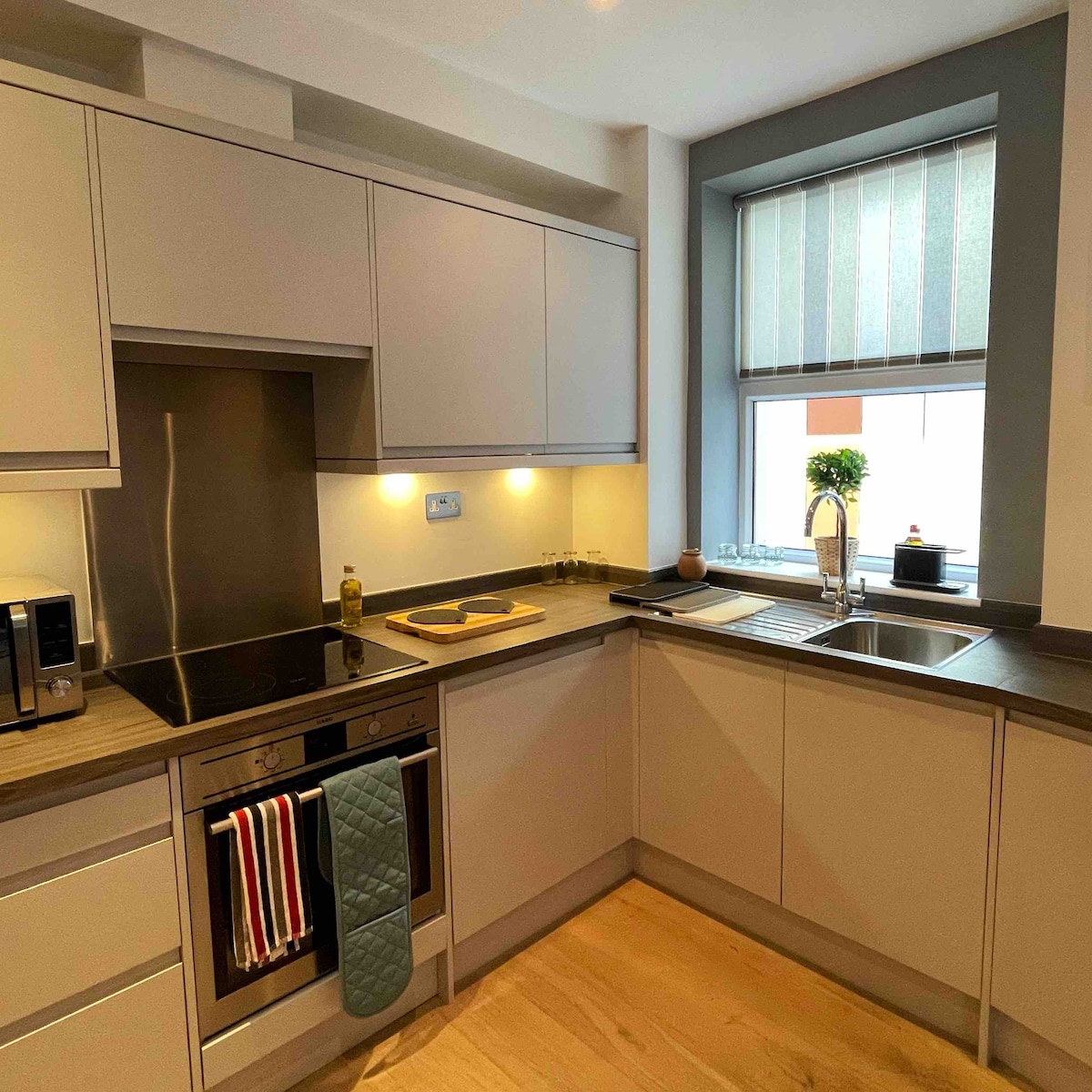 Apartemen mewah dan modern di jantung Stratford - upon - Avon - didekorasi dengan penuh gaya, dengan anggukan ke Bard! Jika Anda suka berada tepat di tengah - tengah aksi, cukup berjalan kaki sebentar dari tempat kelahiran Shakespeare, RSC, dan sejumlah pub dan restoran hebat, ini adalah tempat untuk Anda. Area tamu & ruang makan terbuka luas dan nyaman dengan dapur yang lengkap. Kedua kamar tidur memiliki tempat tidur ganda yang besar dan lemari pakaian yang pas. Tempat menginap yang sempurna untuk liburan akhir pekan atau lebih.