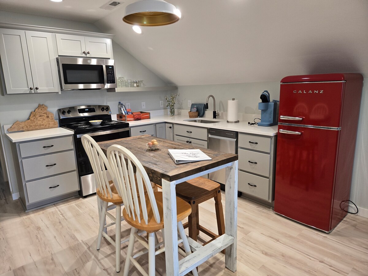 Apartemen studio yang dipenuhi cahaya dan lapang ini adalah tempat yang sempurna untuk memenuhi semua kebutuhan Anda. Terletak di lantai dua pribadi (1 anak tangga) dari garasi terpisah di salah satu rumah paling unik di area ini. Dapur lengkap, ruang makan, dan ruang tamu. Luas dan terbuka, ruang santai seluas 600 kaki persegi. Terletak di pusat Lembah Shenandoah.