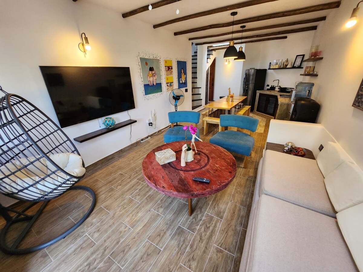 Nikmati suite modern dengan AC di lantai pertama, dengan akses langsung ke laut dan dikelilingi oleh ketenangan. Sangat cocok untuk pasangan, keluarga, dan kaum muda yang ingin bersantai di lingkungan yang pribadi dan aman. Memiliki teras besar dengan pergola jati untuk menikmati pemandangan dan angin laut. Selain itu, tempat ini mencakup akses ke kolam renang, lapangan olahraga, dek - Mirador, dan keamanan pribadi. Terletak dekat dengan restoran dan jauh dari kebisingan, sangat cocok untuk memutuskan hubungan dan menikmati.