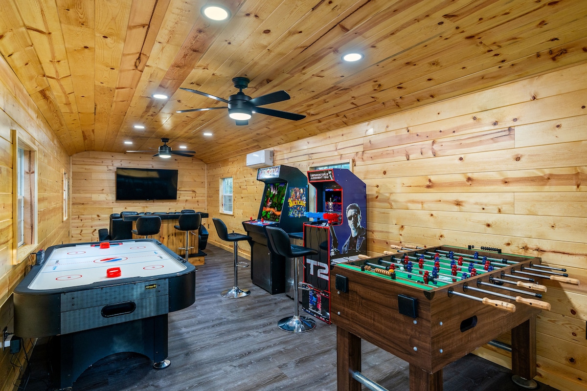 TANPA BIAYA HEWAN PELIHARAAN! SEPULUH MENIT KE TAMAN NASIONAL! Kabin 2br/2ba terpencil baru di lahan seluas satu hektar SEPULUH MENIT ke pintu masuk Taman Nasional Smoky Mountains. Menampilkan bak mandi air panas, perapian listrik, loteng permainan arcade, halaman luas dengan perapian dan permainan halaman (cornhole, sepatu kuda), dan pemandangan indah Mt. Cammerer dari dalam dan luar. Rumah ini memiliki dapur lengkap dengan peralatan baru, denah lantai terbuka dengan langit-langit berkubah dan pemandangan luas, dua tempat tidur berukuran king plus sofa tarik.