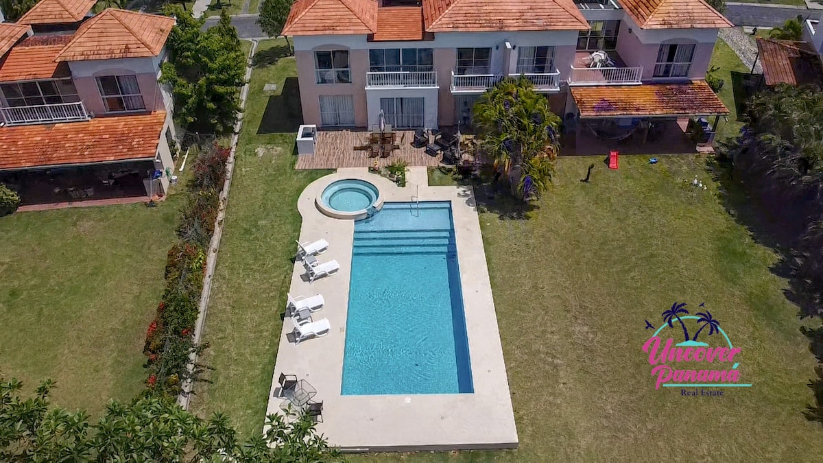 Suasana yang tenang dan tenteram ini adalah tempat yang sempurna untuk beberapa R&R dan hanya berjarak beberapa menit (400 M) dari pantai Panama yang indah. Nikmati patio dengan iguana, burung, dan pegolf. Banyak ruang untuk keluarga besar atau untuk beberapa pasangan dengan banyak resteraunt dan aktivitas yang berbeda hanya dengan berjalan kaki. Jika Anda pegolf, tidak mungkin ada tempat yang lebih baik untuk menghabiskan waktu di ayunan Anda dengan memesan waktu tee atau beberapa jam dengan pemain golf profesional.