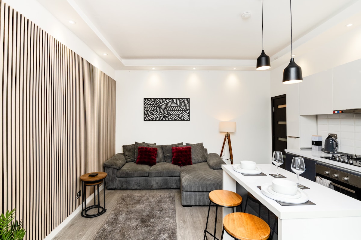 Baru direnovasi, apartemen satu kamar tidur kami terletak hanya 10 menit berjalan kaki dari pusat kota Aberdeen di sepanjang jalan George, area populer dengan banyak toko unik. Kamar tidur ganda yang luas dengan tempat tidur berukuran king, TV 50", TV 50 ", lemari pakaian, peti laci, meja rias dan lantai berdiri cermin panjang penuh. Dapur/lounge semi - terbuka dengan tempat duduk yang luas, area sarapan, dan smart TV. Kamar mandi dengan pancuran hujan mewah di atas bak mandi. Halte bus 2 menit berjalan kaki dan parkir gratis di jalan.