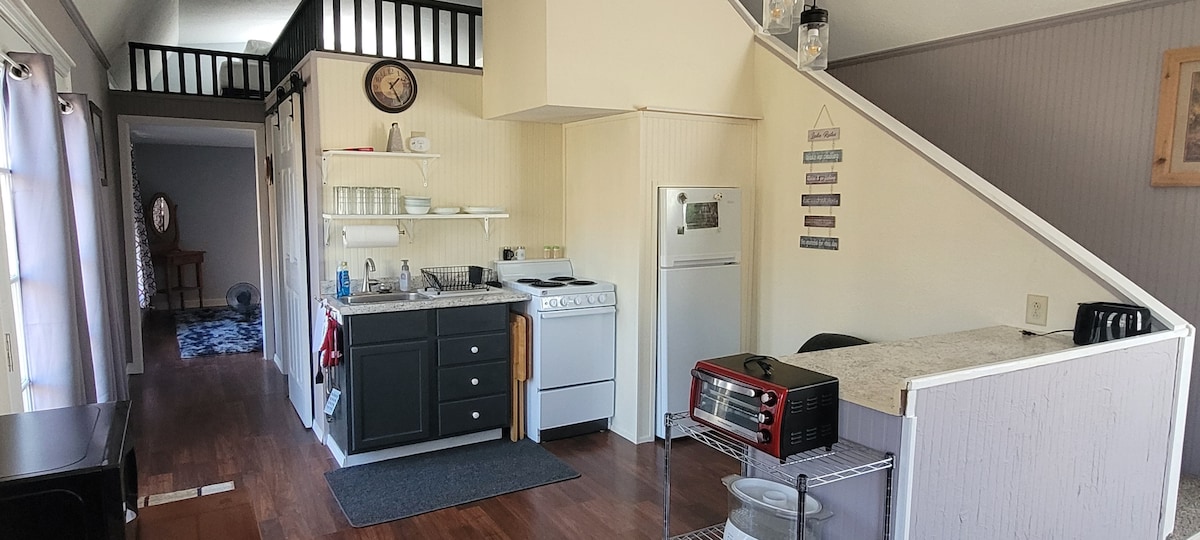 Selamat datang di Kabin Grain Bin kami yang terinspirasi boho yang menawan, Highland sangat ideal untuk 2 -3 orang dewasa atau 2 orang dewasa dan 2 anak kecil. Di lantai atas, Anda akan menemukan tempat tidur king yang nyaman di loteng, sementara di lantai bawah menampilkan futon yang nyaman di ruang tamu utama. Dapur lengkap dilengkapi dengan segala yang Anda butuhkan. Kamar mandi lengkap dengan shower walk - in di lantai bawah. Rasakan liburan pedesaan yang tenang dengan matahari terbenam yang menakjubkan dan lingkungan yang damai, hanya beberapa saat dari Versailles.