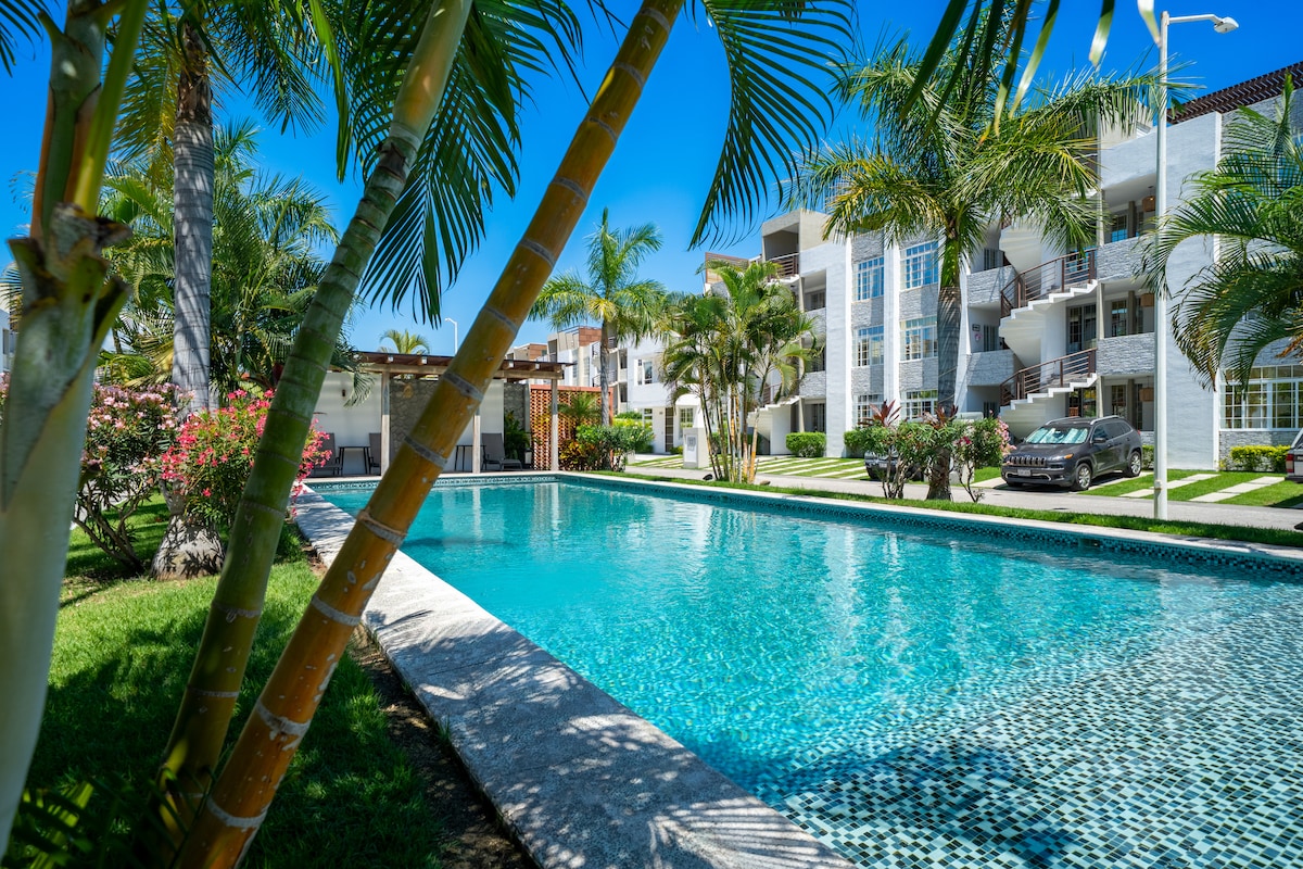 Apartemen yang nyaman dan bergaya di dalam komunitas berpagar (pribadi) dengan keamanan 24 jam. Apartemen ini memiliki tempat parkir sendiri di dalam komunitas berpagar (pribadi). Tempat ini memiliki kolam renang pribadi di dalam area pribadi. Apartemen ini berlokasi di kawasan wisata Manzanillo, 5 menit berkendara dari pantai wisata Manzanillo. Tempat ini ideal untuk menginap bersama keluarga atau teman-teman.