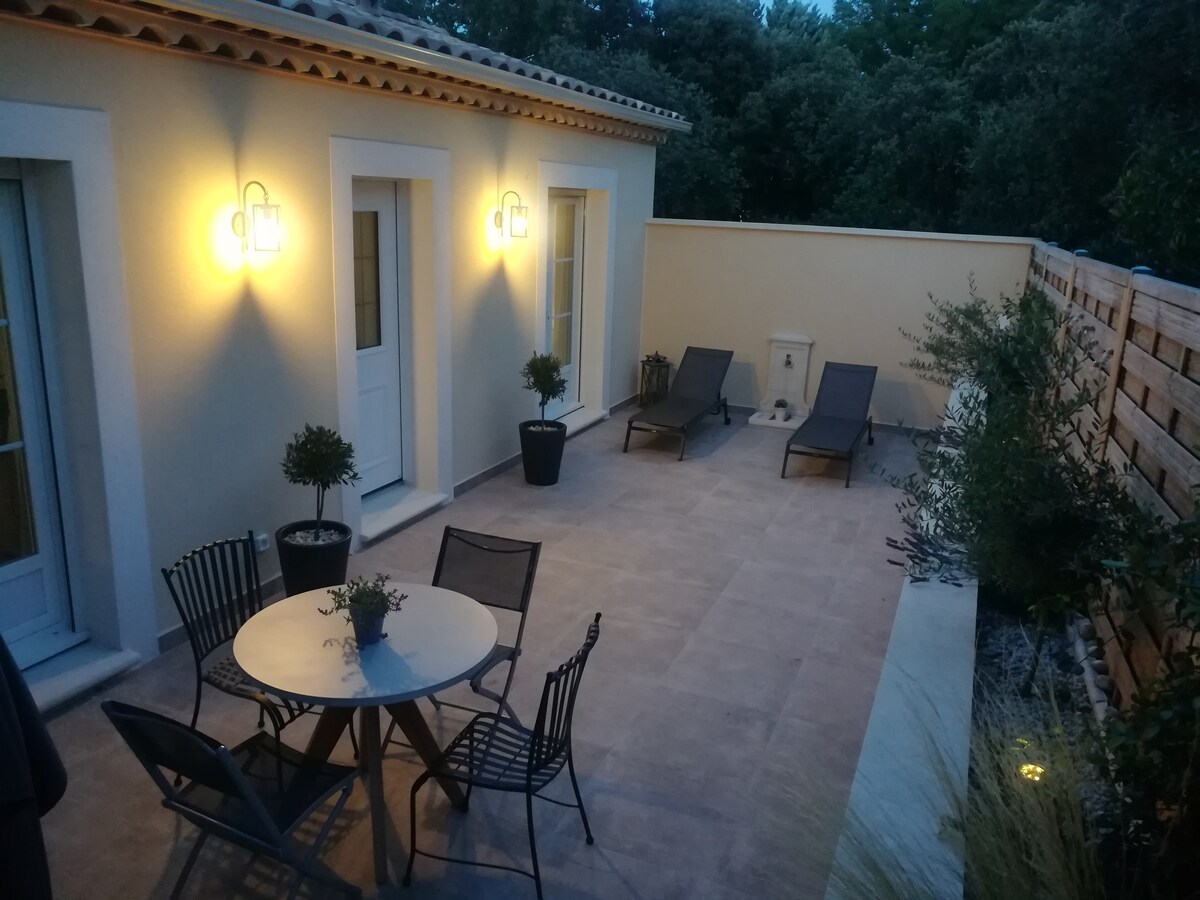 Flat modern seluas 40 m² kurang dari 5 menit dari Isle - sur - la - Sorgue. Manfaat utama: - Lingkungan tinggal yang tenang, akomodasi mandiri - Parkir aman di properti dengan gerbang otomatis - Taman pribadi seluas 90 m² dengan teras Lokasi yang ideal untuk menjelajahi wilayah ini: 20/30 menit jauhnya: Alpilles, Luberon, Avignon, Parc Spirou dan Wave Island, Saint - Rémy - de - Provence, Les Baux - de - Provence, Châteauneuf - du - Pape. Peringatan: akomodasi tidak dapat diakses oleh orang dengan mobilitas berkurang (PRM).