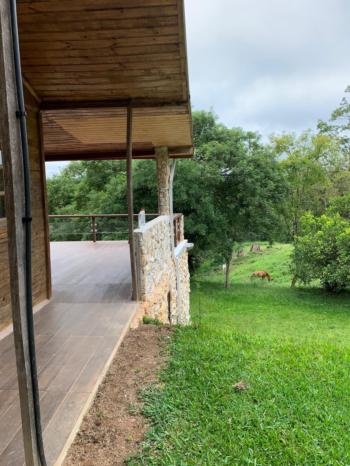 A casa tem cozinha equipada, salas de Tv e jantar com estilo integrado, 1 suíte e 1 quarto com cama de casal, sofá cama para duas pessoas e 1 lavabo. Na parte de baixo temos também uma kitnet com banheiro, quarto com cama de casal e cozinha. Na área externa temos 3 decks para curtir e um deles com casa de vidro, ótimo para jogar e curtir. O ambiente todo é bem rural com amplo espaço, perfeito para se conectar com a sua família e com a natureza. Relaxe com toda a família!!