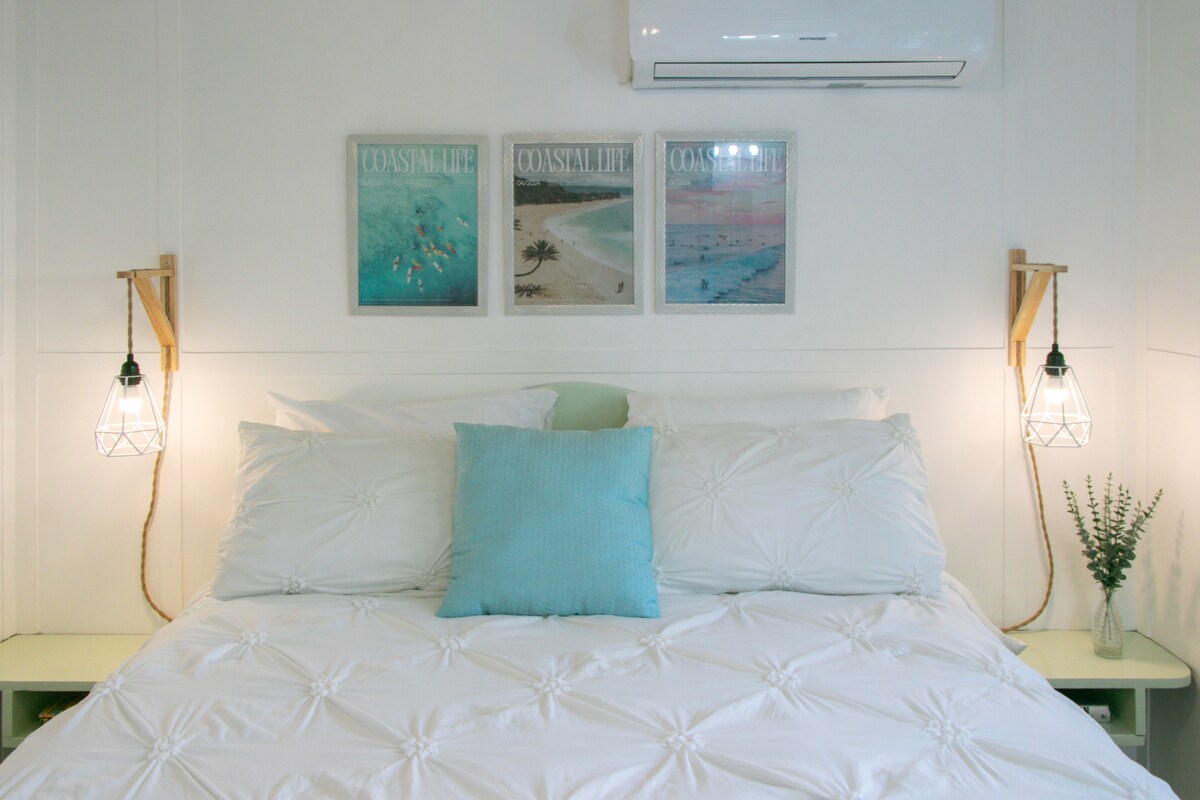 Kurang dari 100 m dari pantai, ini adalah pilihan yang bagus untuk rombongan kecil atau pasangan yang mencari tempat persembunyian romantis. Dengan dapur lengkap, area makan, meja, balkon, dan ruang tamu dengan TV & Netflix, Anda akan merasa seperti di rumah sendiri. Kamar tidur utama memiliki kasur Queen 14" Wellsville Latex Hybrid, AC & kipas angin langit - langit. Kamar tidur ke -2 memiliki kipas angin lengkap & kipas angin. Tempat tidur Queen terletak di loteng di atas, dengan kipas angin lantai. Kamar mandi berada di lantai utama dengan pancuran air hujan.