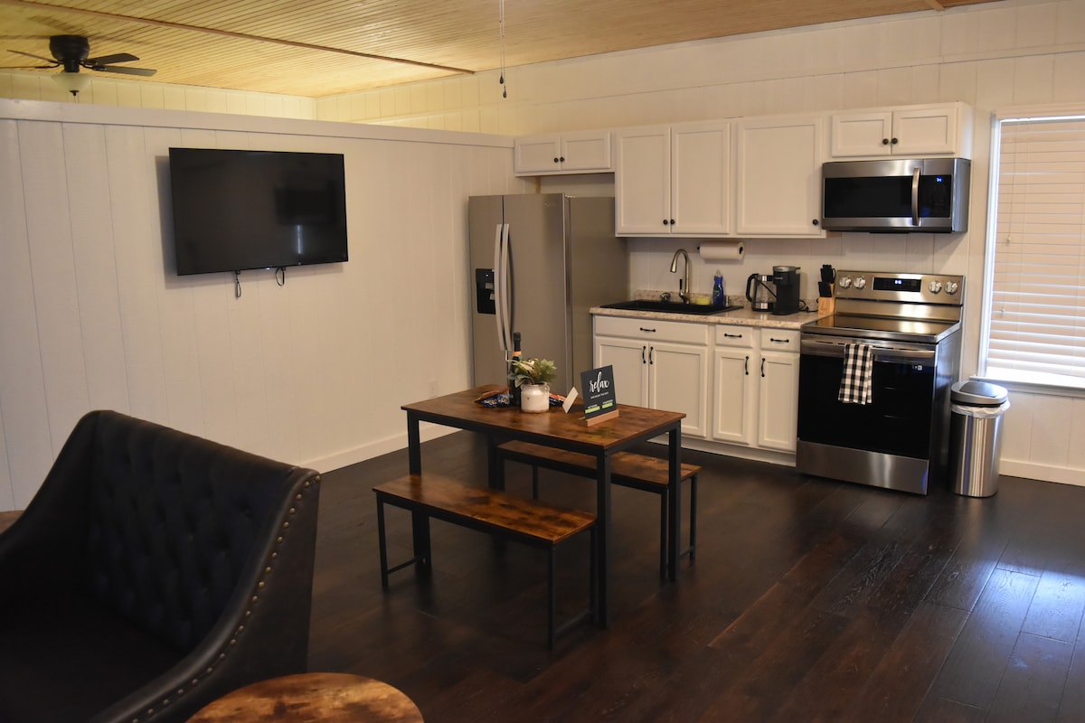 ✦ Kamar yang modern, namun nyaman, seluas 600 kaki persegi. Barndominium dengan dapur dan kamar mandi lengkap, satu tempat tidur king, kamar tamu, lemari, Amazon, Netflix, Disney+, Roku, dan WiFi cepat. Kami membangun barndo pada tahun 2022, dan menyediakannya untuk Airbnb. Kami memiliki TV Roku di ruang tamu juga yang dikonfigurasi dengan aplikasi pengaturan Amazon dan Netflix, yang memberi Anda akses ke jaringan, Ini juga memungkinkan Anda untuk masuk ke layanan streaming Anda sendiri seperti , Hulu, HBO, Cinemax dan sebagainya.