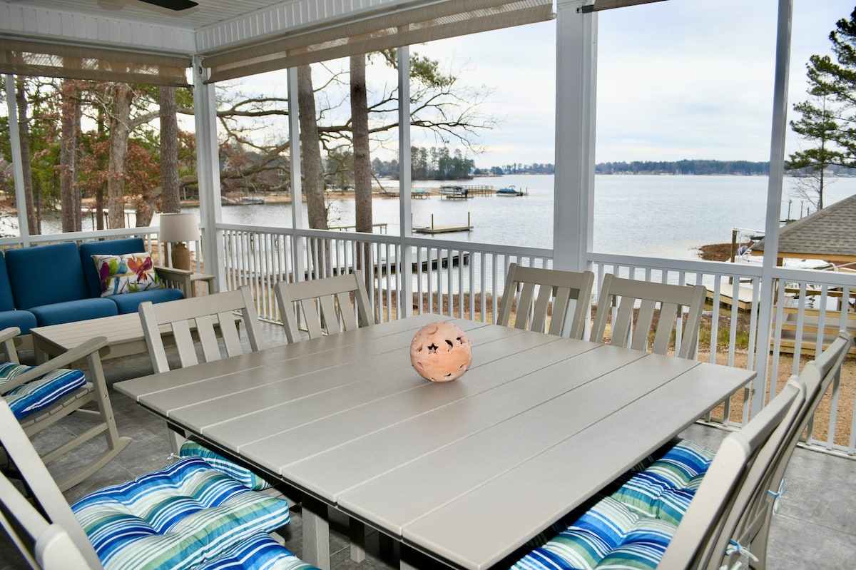 Lakefront home on Lake Murray in Lexington, SC on over 1/2 an acre, 166 feet of waterfront with deep water, private dock, and entertainment space- perfect for an unforgettable vacation or weekend. Entire home for rent-4BR, 3 Bath +2 half baths, 2 sofa sleepers, sleeps 12. Breathtaking kitchen & large living space, perfect for the entire family. 2 single person kayaks, outdoor grill, 65 inch and 55 inch TV, washer/dryer, and fast wifi. Master suite with a lavish bathroom and soaking tub.