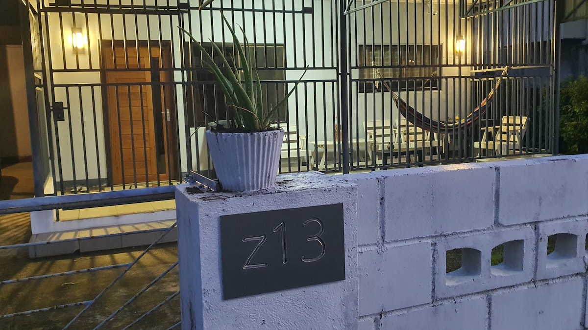 In het centrum van Paramaribo in een rustige straat vrijstaande woning. Vlak bij De Waterkant, Fort Zeelandia, Waka Pasi, Palmentuin de uitgaansstraat Van Sommelsdijkstaat met restaurantjes en barretjes. Ook de Combe (super)markt is op loopafstand. Humphrey is de beheerder, op de poort is een sleutelkluis, 1 sleutel voor deur in de poort, 1 sleutel voor de voordeur en een divisie voor elektrisch open van de poort.