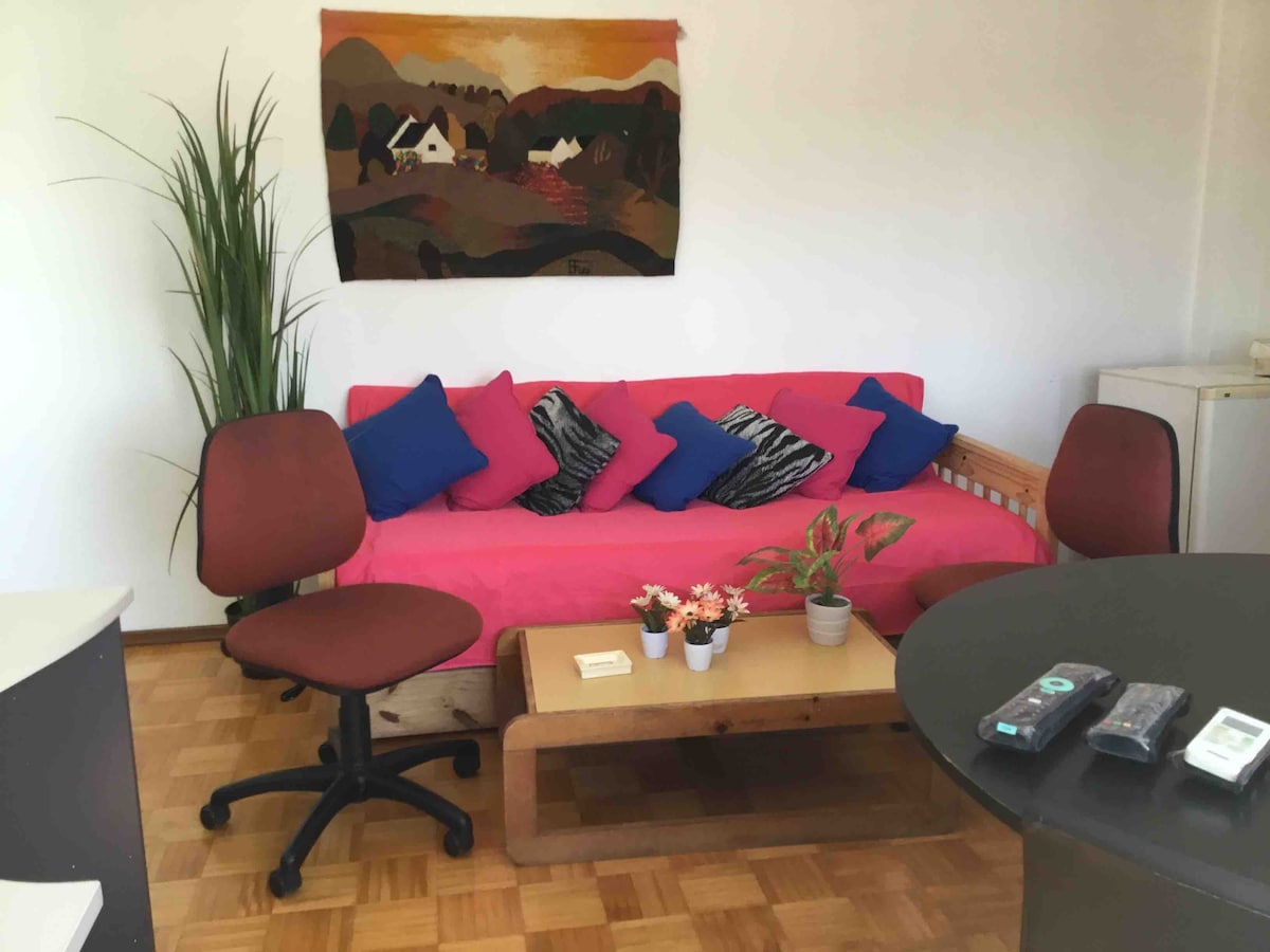 STUDIO en Retiro seluas 45 m2 , luas benar - benar didaur ulang. Furnitur modern Gaya Nordik Kamar mandi lengkap dengan shower dan bidet Dapur: Anafe, kulkas, microwave, pemanggang roti, pembuat sandwich, teko listrik, mesin kopi Nesspreso, saat ini tanpa oven. Tempatnya dekat dari mana - mana. Teatro Colón 5 blok Obelisk : 6 blok Galerias Pacifico Shopping 1 blok. Halte bus turis berjarak 1 blok. Buquebus 5 blok Teatros Av Corrientes . 3 blok jauhnya SUBTE: 2 blok jauhnya.