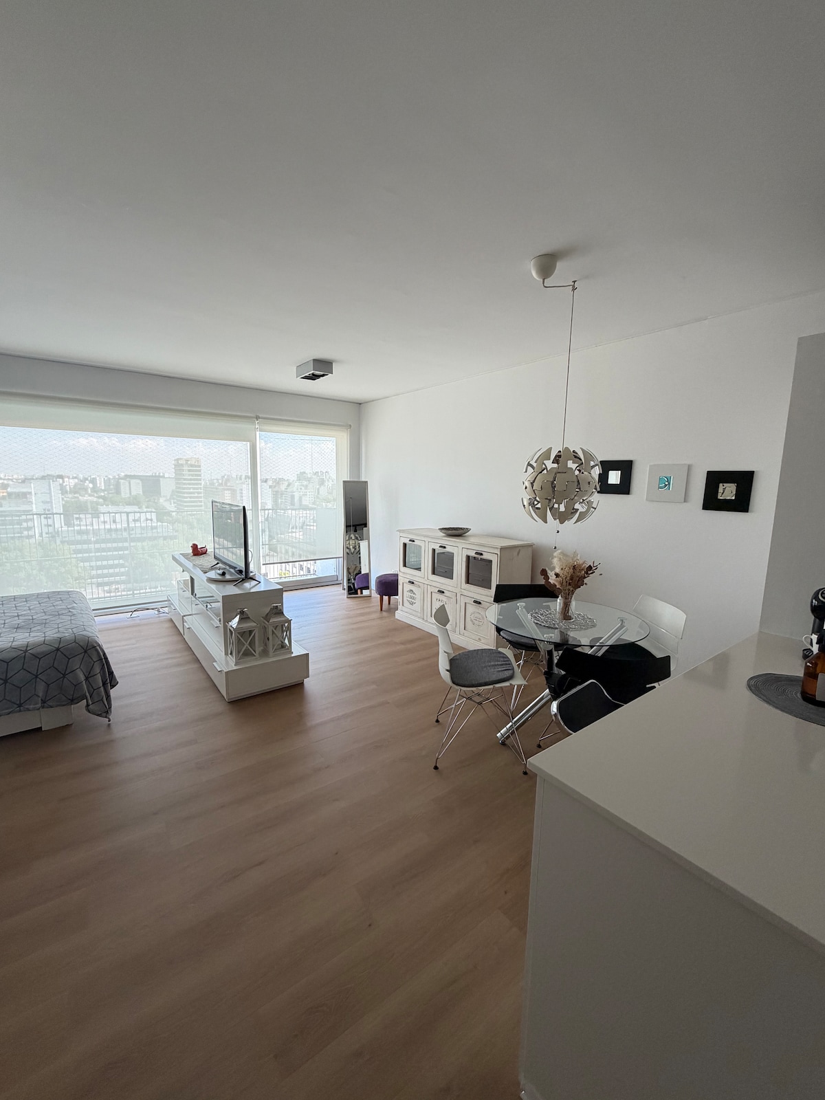Apartemen modern di lantai atas dengan pemandangan kota