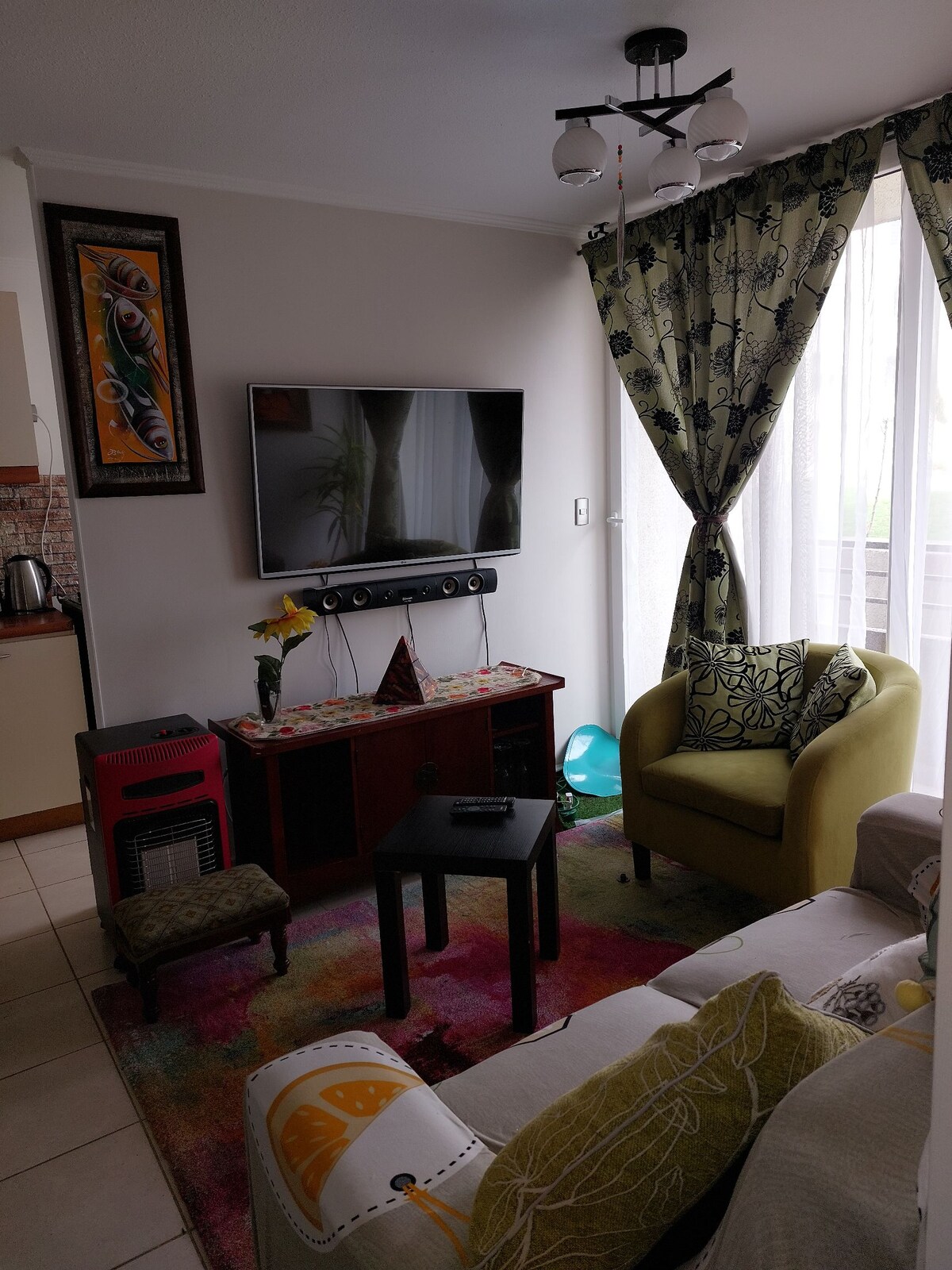 **Apartemen yang nyaman, pencahayaan alami yang baik, jendela besar, teras. Kamar mandi dengan bak mandi, handuk Kamar tidur berkarpet. Dilengkapi dapur: ketel, pemanggang roti, oven listrik, kulkas, kulkas, dll. *Hanya tempat yang Anda cari, area hijau, tenang, dapat diakses oleh supermarket, mal, bioskop, toko roti, makanan cepat saji. *Dekat dengan tempat wisata seperti Caleta LENGA, Descenbocadura *Concierge, gerbang otomato, dan parkir. lantai pertama, jendela ke taman.