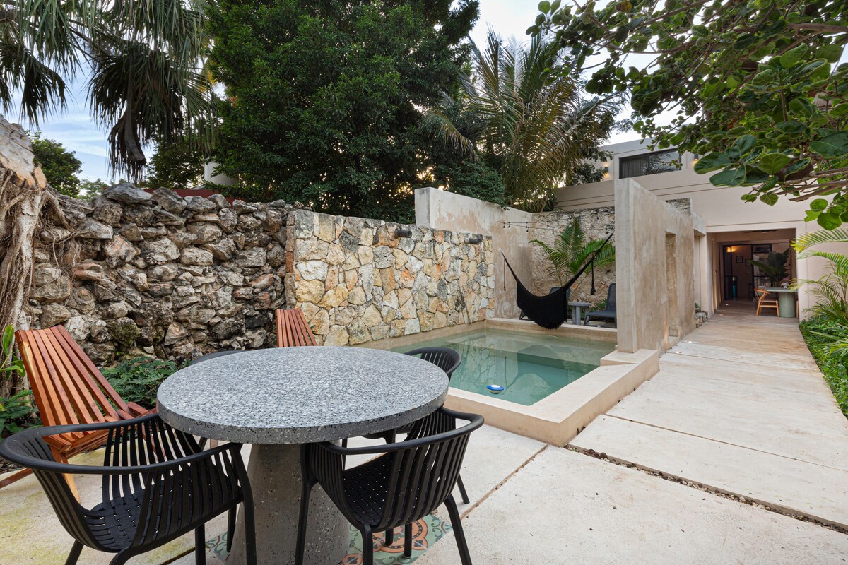 Apartemen yang nyaman di lokasi yang sangat baik, beberapa langkah dari Paseo Montejo, kawasan wisata arsitektur dan monumen bersejarah, dekat dengan koridor gastronomi Calle 47, La Plancha Park, Paseo 60, Konsulat Amerika, Terminal Bus ADO, serta banyak kafe, bar, restoran, bank, dan Walmart. Apartemen satu kamar tidur yang tenang dan nyaman ini sangat ideal untuk masa inap jangka panjang atau pendek, ruang kantor rumah, atau bersantai. Di sini juga terdapat kolam renang yang indah untuk menyejukkan diri setelah tur kota.