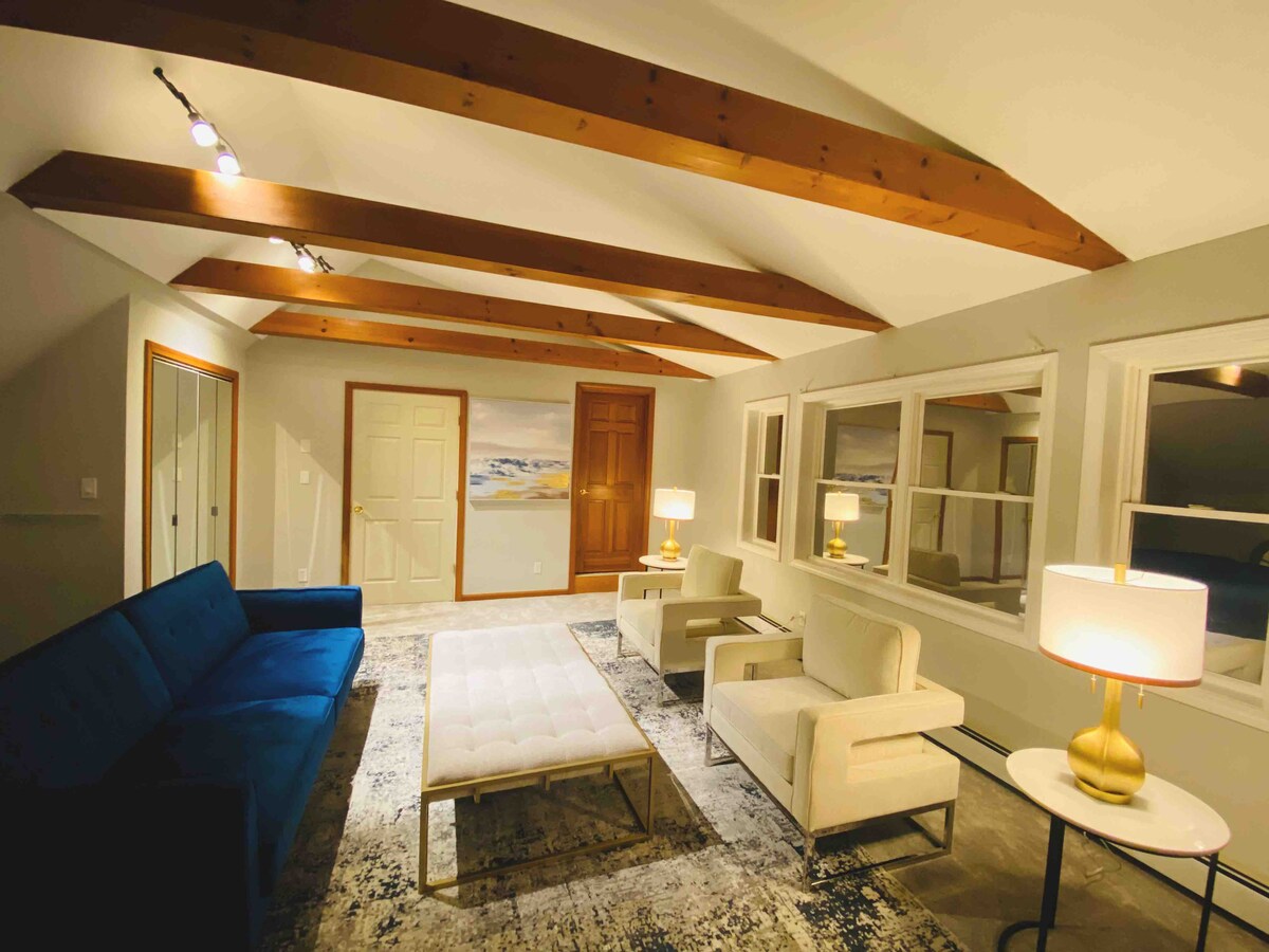 Bebaskan diri Anda ke studio tepi laut yang unik di Cider Mill abad ke-19 yang telah dipugar di perbatasan Westport/Southport. Tempat peristirahatan yang diterangi matahari ini menawarkan pemandangan Sasco Brook yang menakjubkan, balok yang terlihat, dan kenyamanan modern. Sempurna untuk pasangan atau wisatawan solo, tempat ini nyaman untuk 2-3 orang dan mencakup ruang kerja khusus dengan Wi-Fi berkecepatan tinggi. Liburan yang benar-benar bersejarah dan damai.