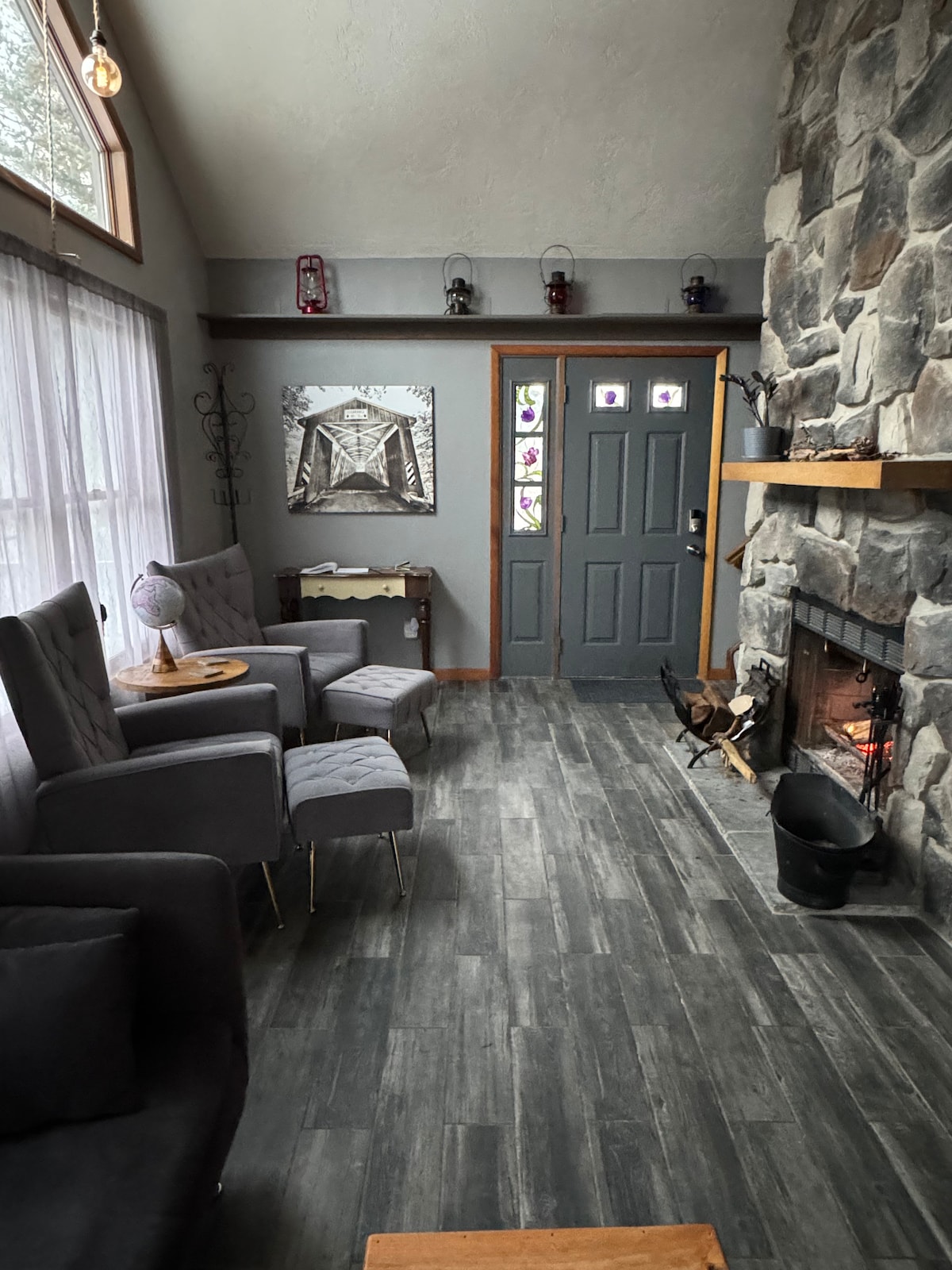 Berliburlah ke rumah pedesaan kami yang menawan, tempat ketenangan pedesaan berpadu dengan kenyamanan modern. Nikmati ruang yang baru direnovasi dengan tiga kamar tidur, satu kamar mandi, dan pemandangan indah hutan dan lahan pertanian. Jelajahi keindahan negara ini atau bersantai di dek belakang atau perapian. Di dalam, ruang tamu terbuka dan dapur berfasilitas lengkap menanti. Baik itu tempat peristirahatan yang damai atau petualangan keluarga, nikmati keajaiban pedesaan dengan segala kenyamanan rumah. Pesan sekarang untuk kenangan pedesaan yang tak terlupakan.