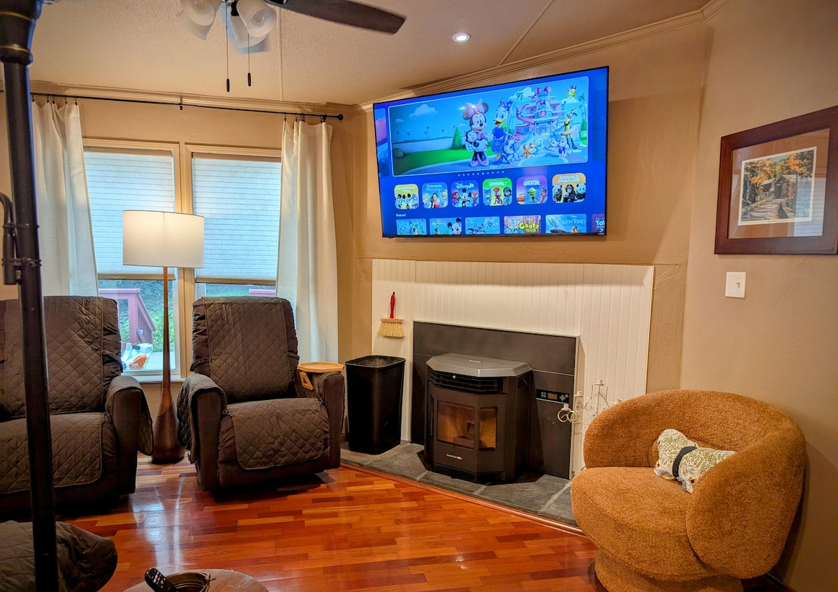 SAUNA TONG BARU! Selamat datang di kabin Anda di pegunungan Laurel Highlands, di mana ada aktivitas yang bisa dilakukan semua orang. Kabin ini berjarak 5 menit dari Hidden Valley dan Kooser Park. Tempat ini terletak di lembah yang tenang (ada sungai di hutan di belakang!) tetapi memiliki akses ke pusat kota. Nikmati BBQ keluarga di dek belakang yang terpencil dengan halaman belakang berpagar. Kami juga ramah anjing! Dua kamar tidur, dapur, dan tata letak satu lantai, kabin ini berukuran tepat untuk bersantai dengan nyaman atau sebagai markas untuk petualangan Anda.