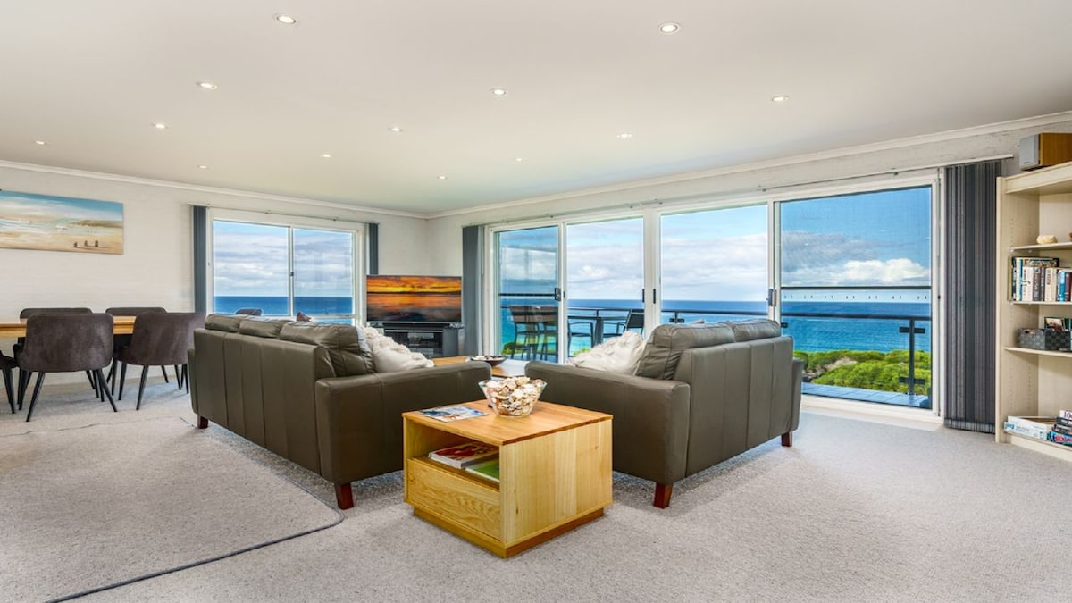 Perlengkapan sarapan kontinental disediakan. Apartemen studio lengkap yang terletak di lantai bawah di tempat tinggal keluarga. Dapur kecil modern, kamar mandi, tempat tidur king, TV & DVD pintar 40", AC, seprai berkualitas, pintu masuk sendiri, mesin cuci, kulkas, pengaturan luar ruangan, pilihan. BBQ, Wi - Fi, jemuran, parkir di luar jalan, gelombang m'wave, kompor & peralatan memasak. Lingkungan tinggal yang indah, pemandangan laut, berjalan kaki singkat ke pantai & Taman Nasional yang indah. Berkendara singkat ke toko Tura Beach & 10 menit berkendara ke Merimbula.